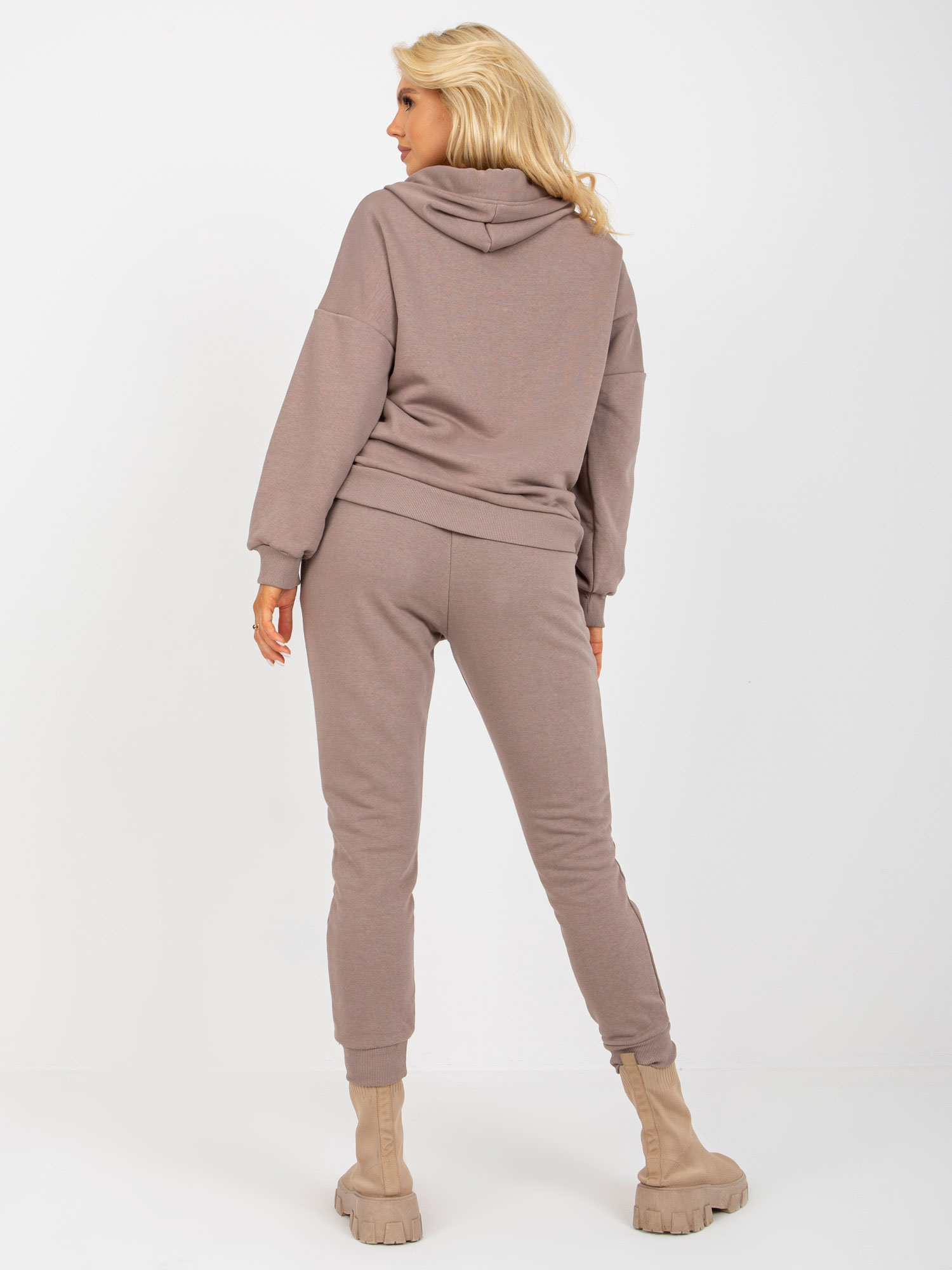 Ciemnobeżowy dwuczęściowy komplet dresowy ze spodniami .