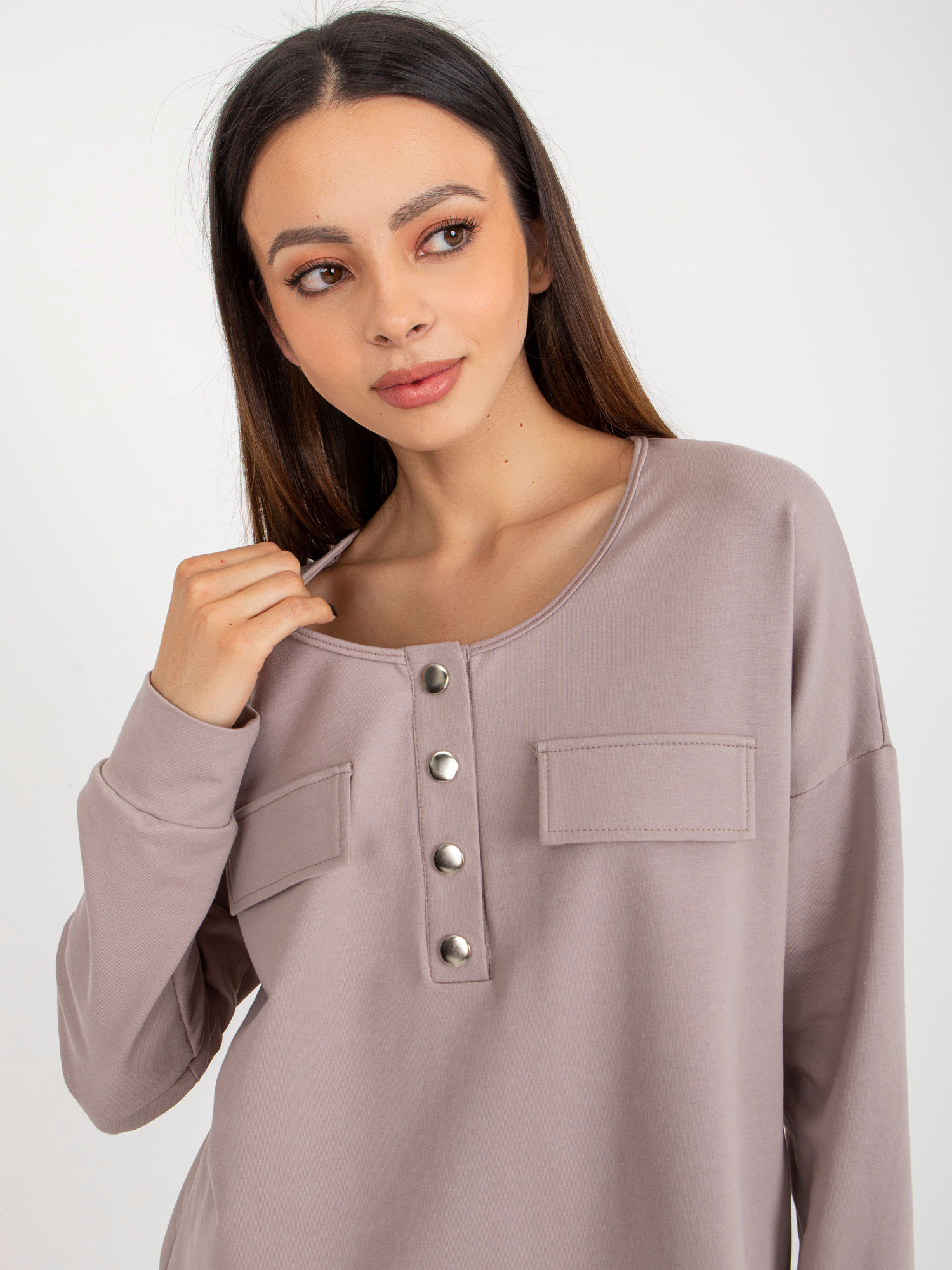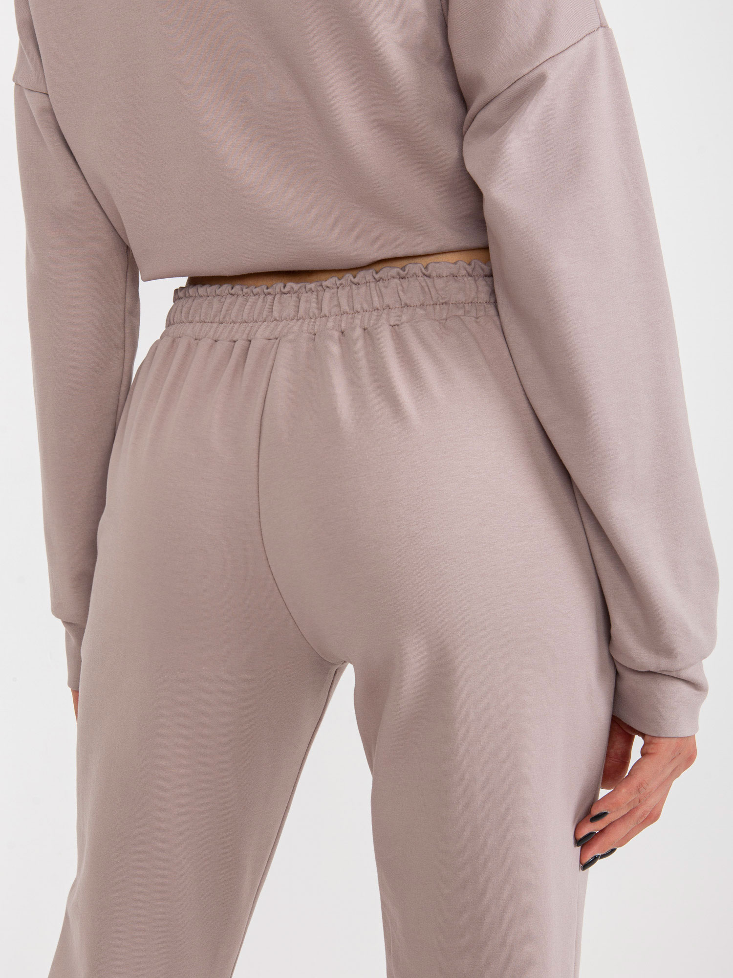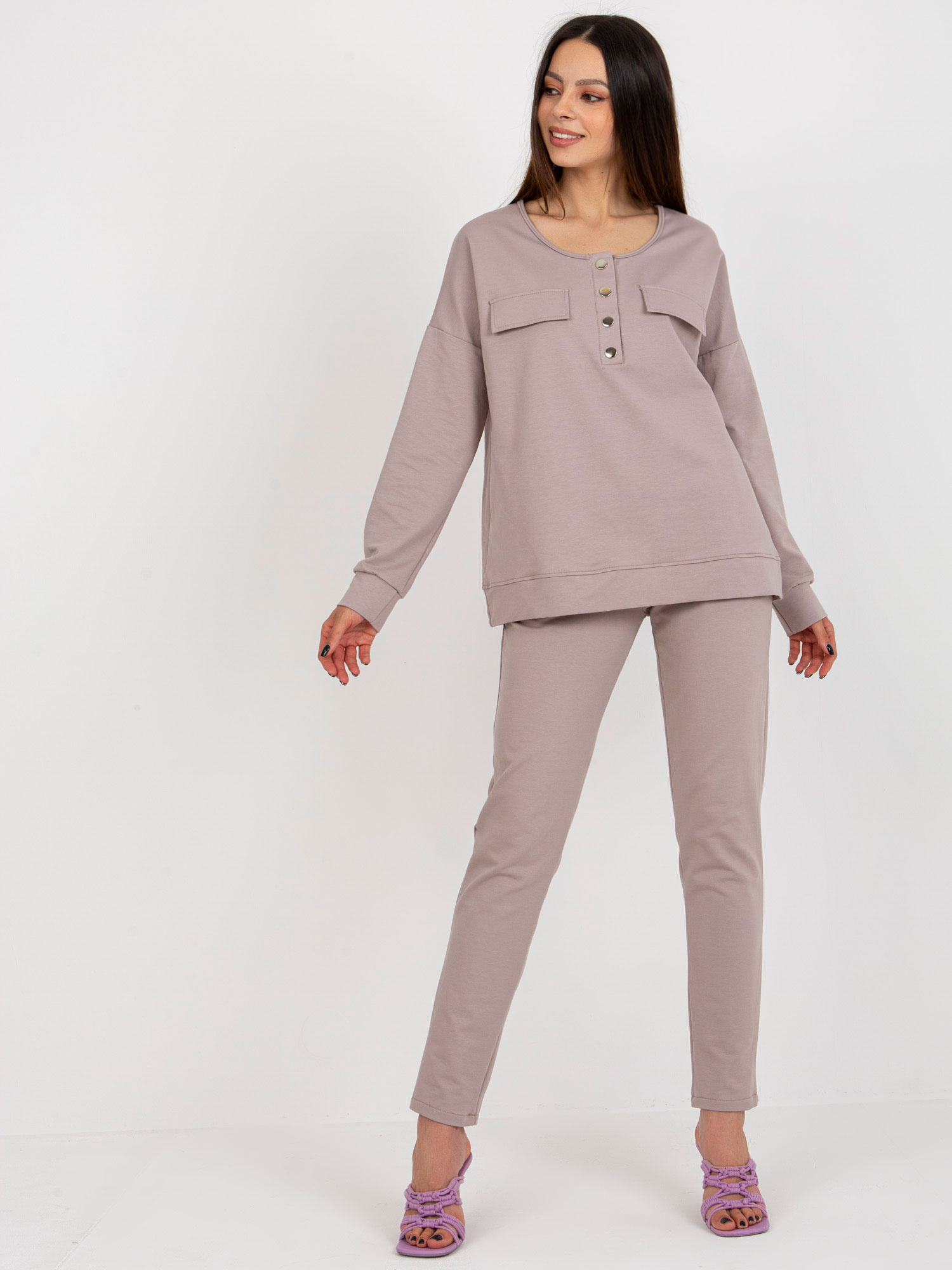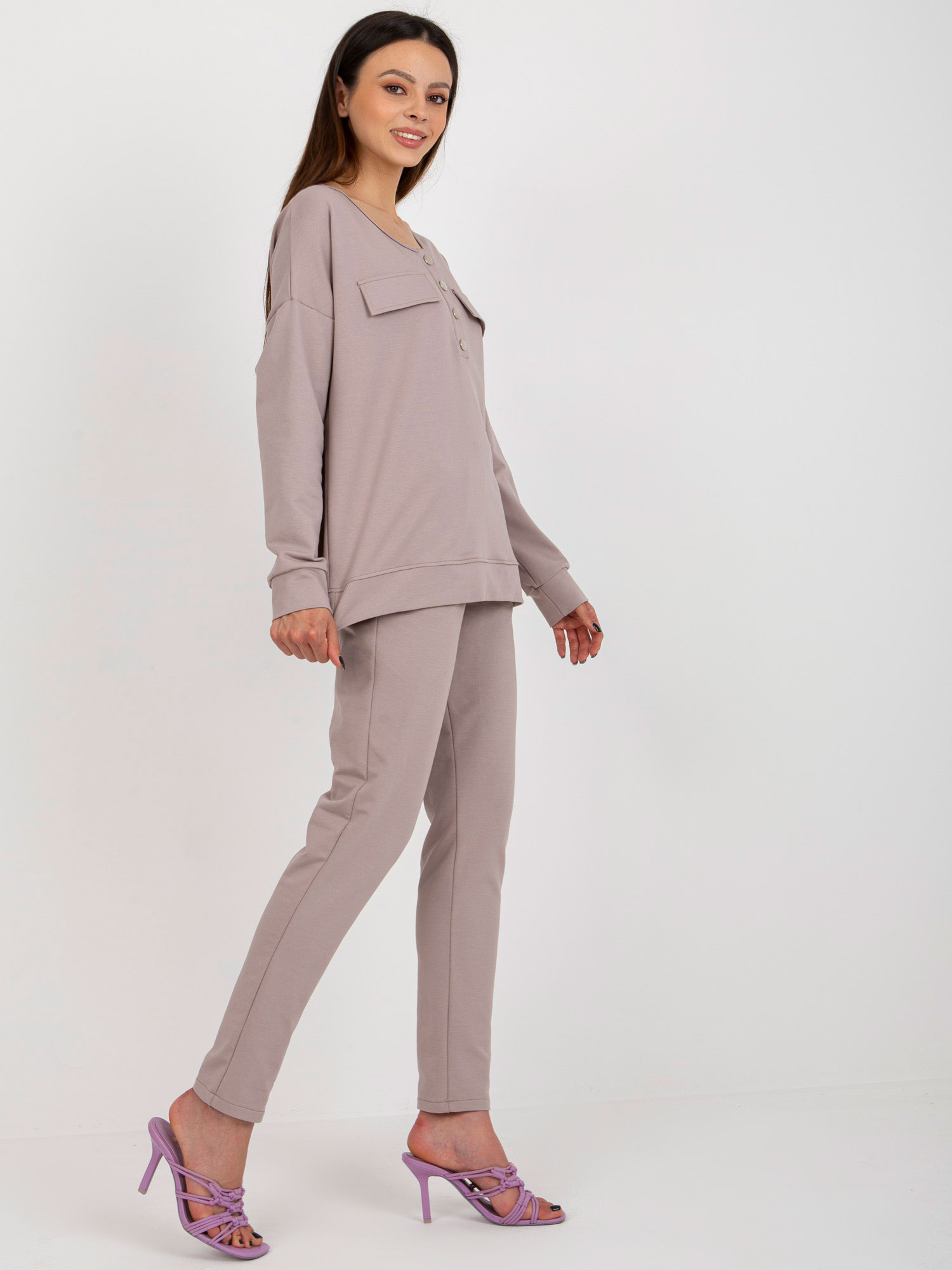 Ciemnobeżowy bawełniany komplet dwuczęściowy.