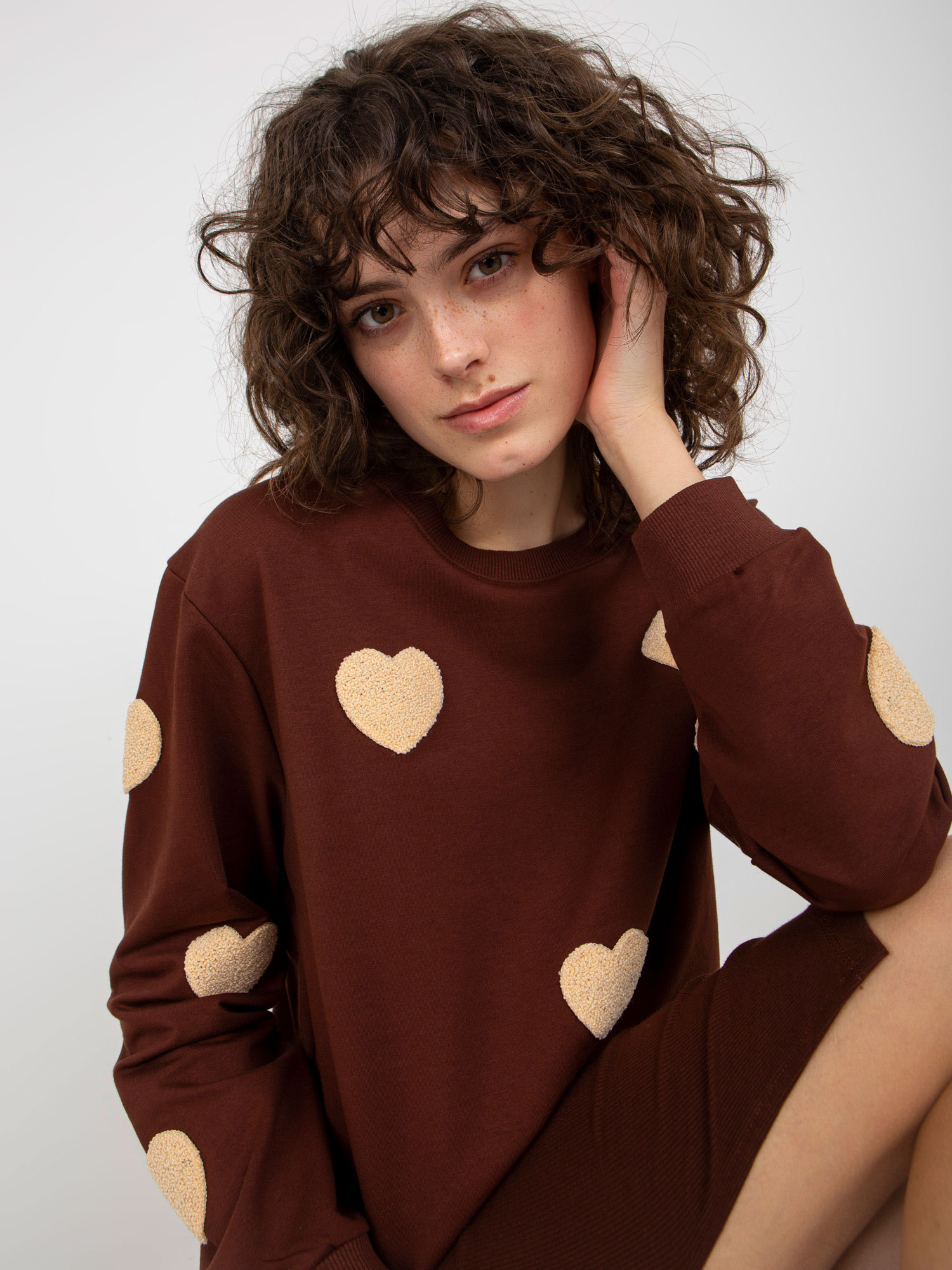 Ciemnobrązowy komplet casualowy z bluzą i sukienką .