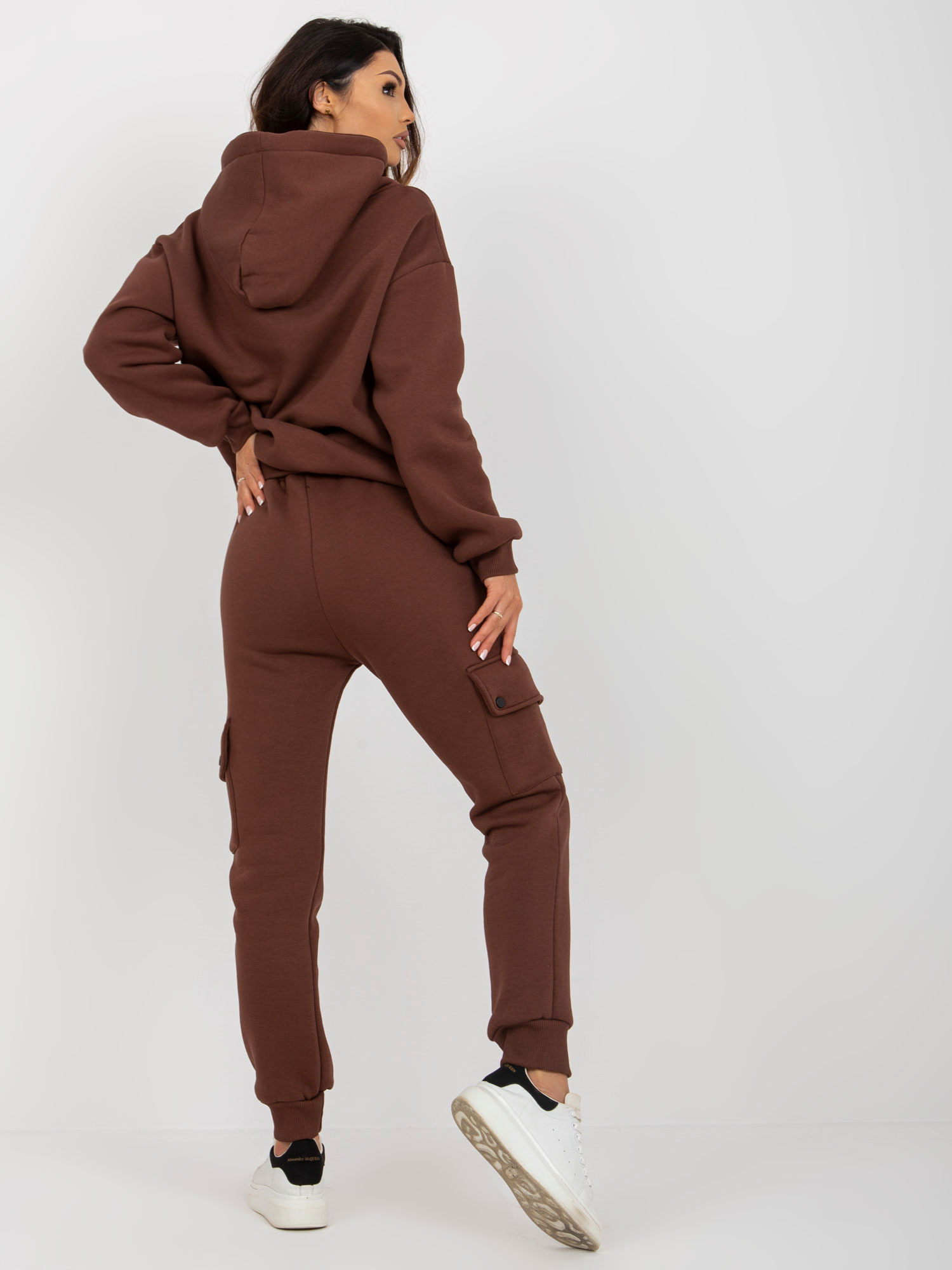 Ciemnobrązowy komplet dresowy ze spodniami cargo .