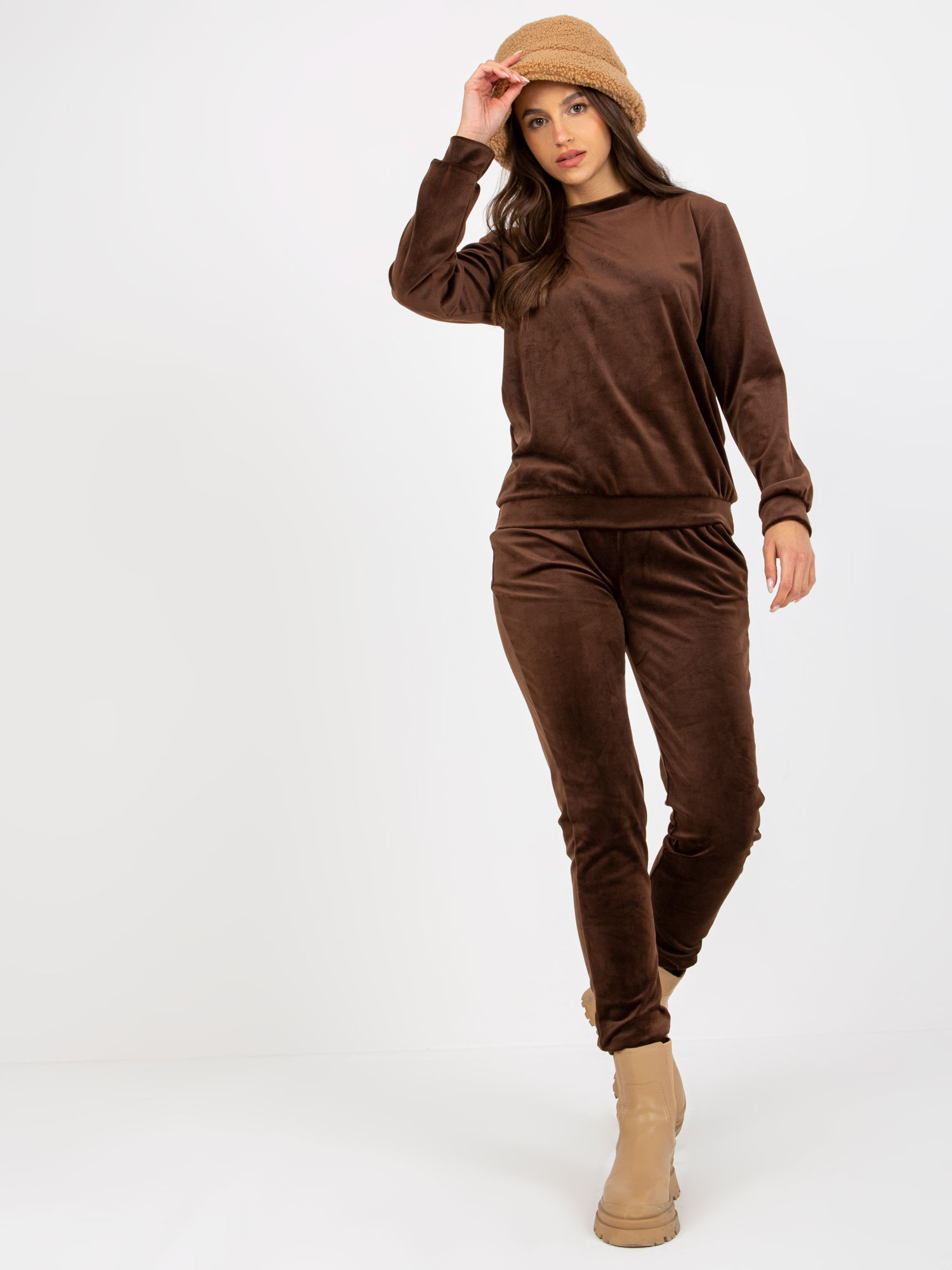 Ciemnobrązowy komplet welurowy z bluzą RUE PARIS .