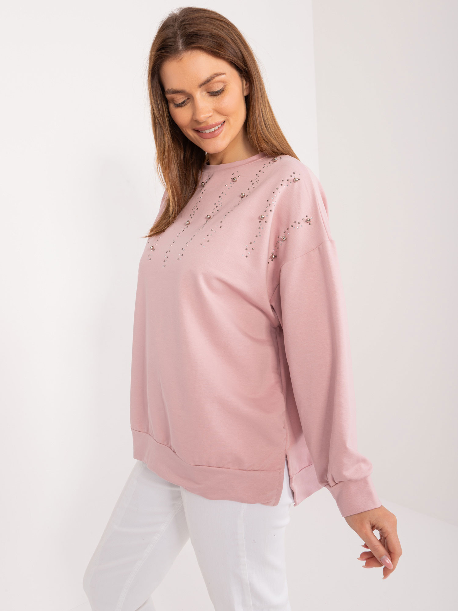 Wymiary bluzy w rozmiarze one size mierzone na płasko: szerokość bluzy pod pachami – 62 cm, długość bluzy – 74 cm, długość rękawa – 43 cm (od pachy), obwód w biodrach – 110 cm.