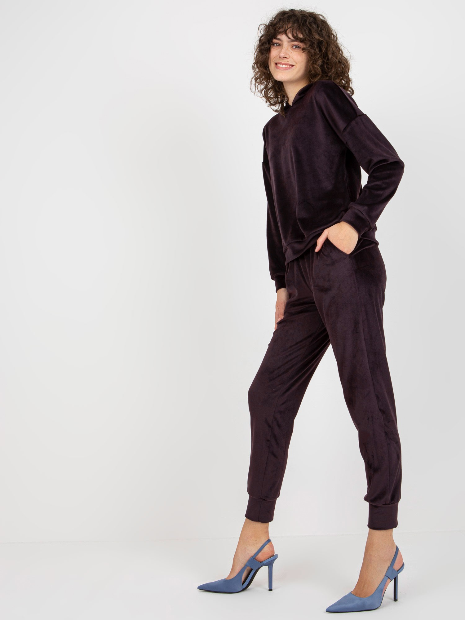 Ciemnofioletowy komplet welurowy z bluzą z kapturem .