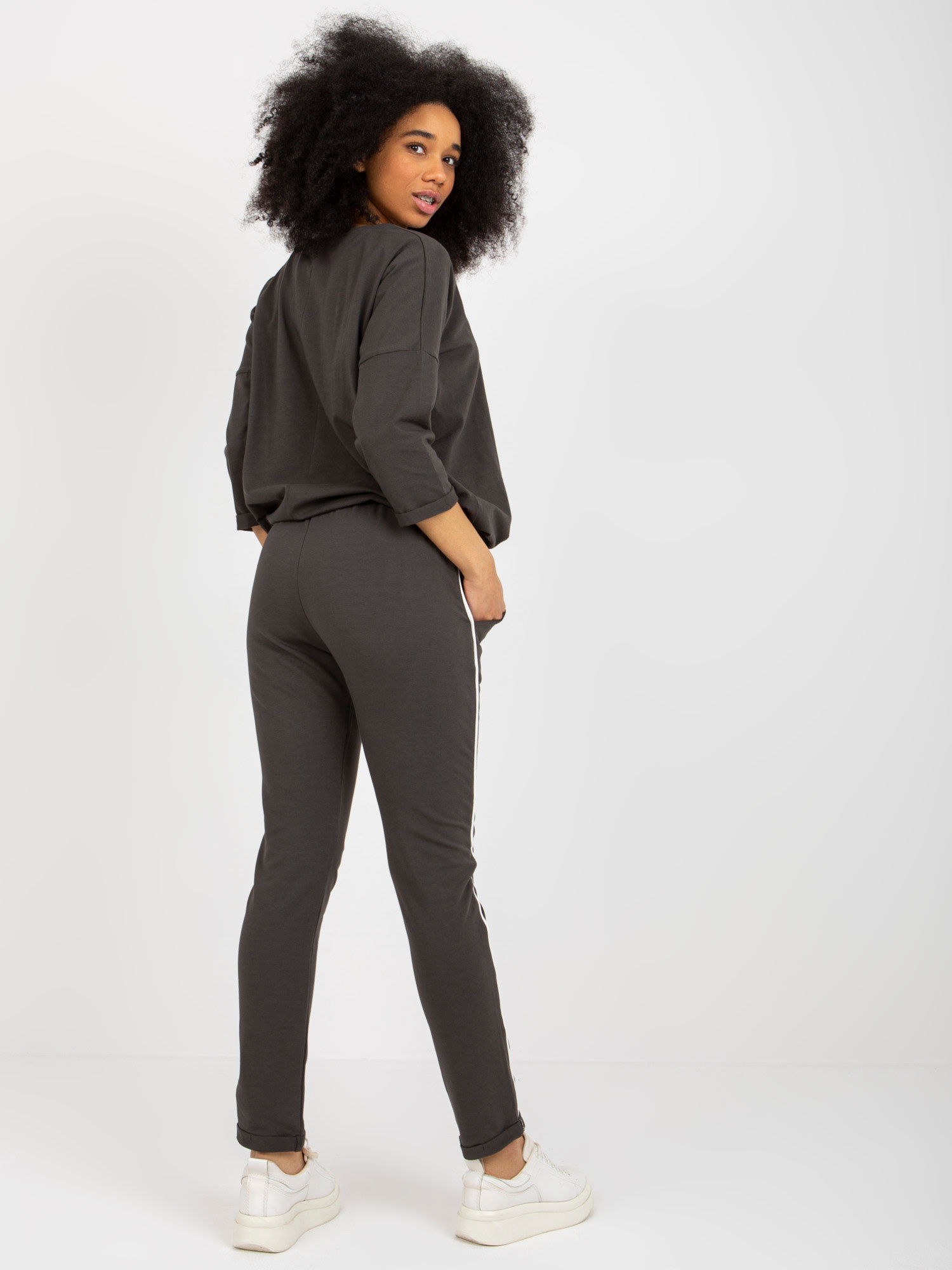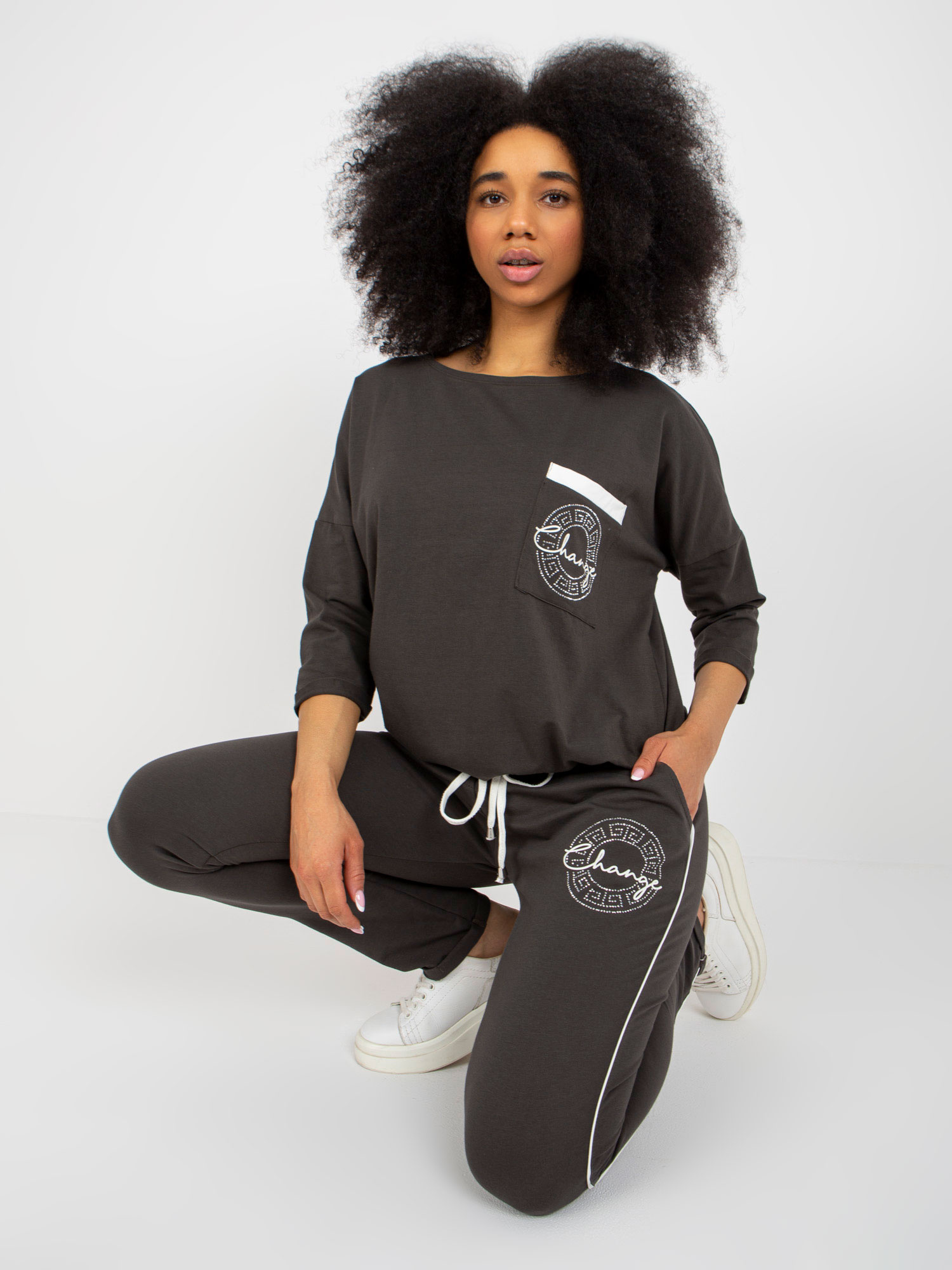 Khaki dwuczęściowy komplet dresowy z aplikacją .