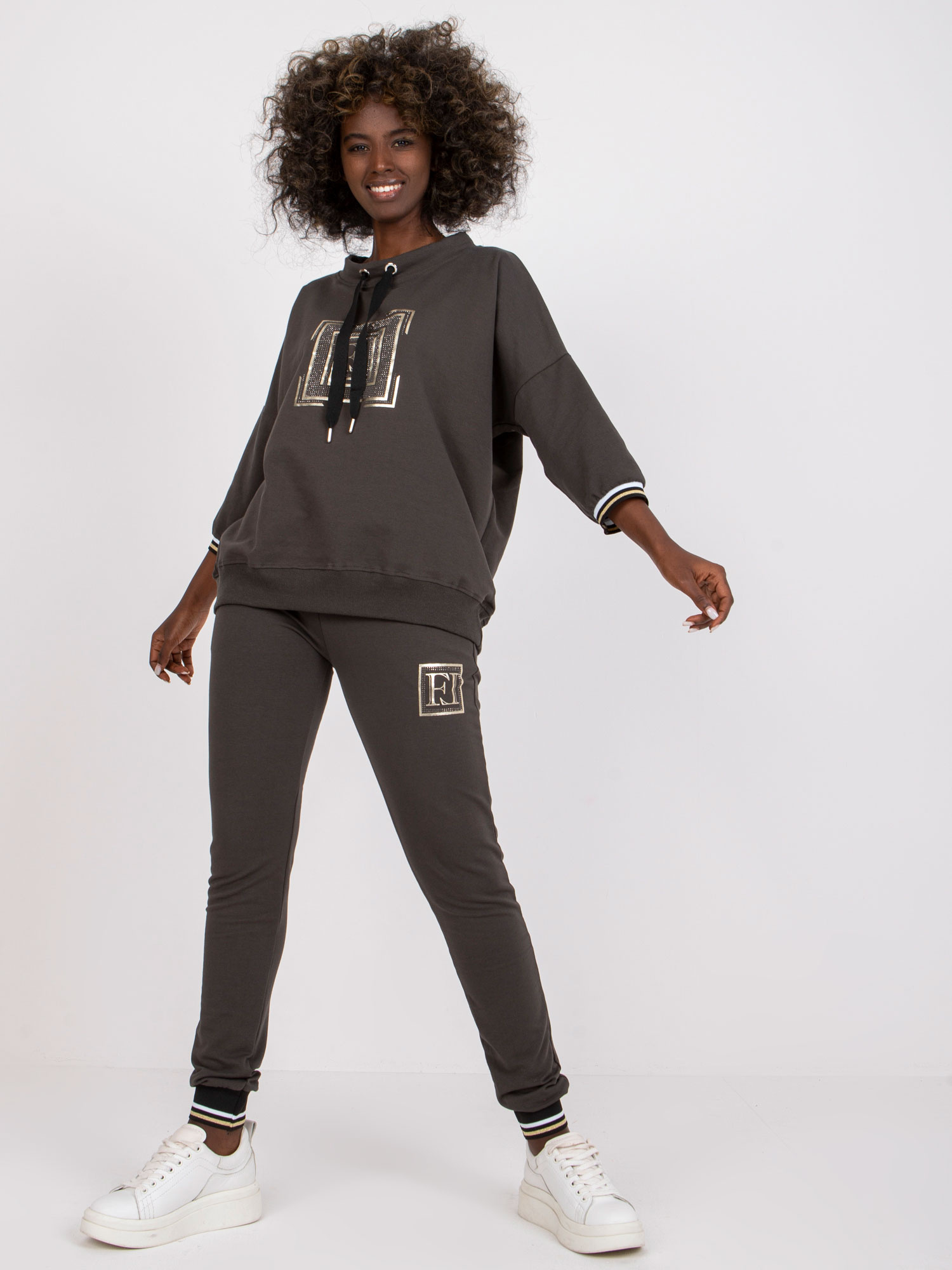 Wymiary kompletu w rozmiarze S/M mierzone na płasko: szerokość bluzy pod pachami – 61 cm, długość rękawa – 43 cm, długość bluzy – 64 cm, szerokość spodni w pasie – 36 cm, długość spodni – 101 cm.