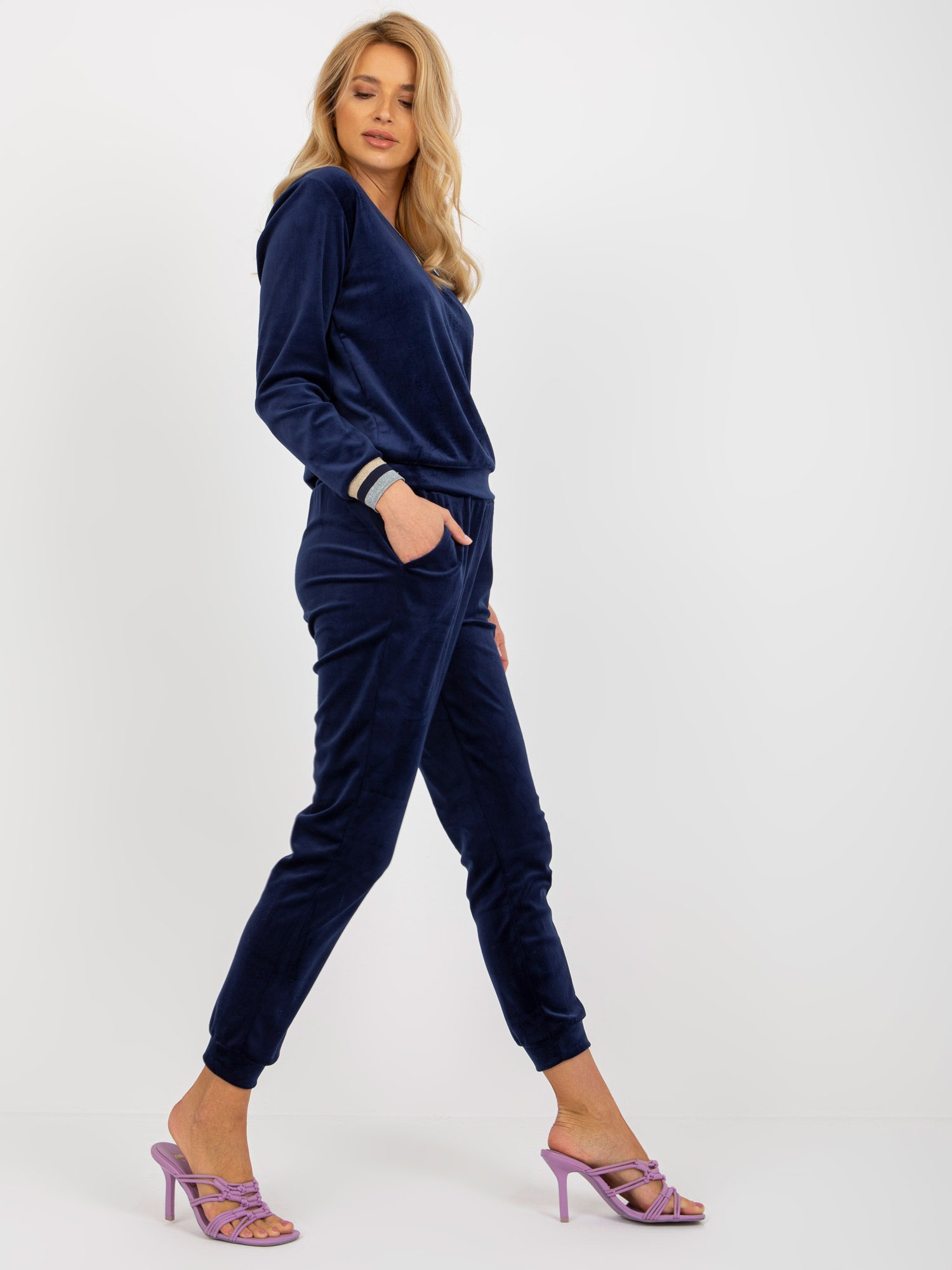 Ciemnoniebieski komplet welurowy ze spodniami Esti RUE PARIS .