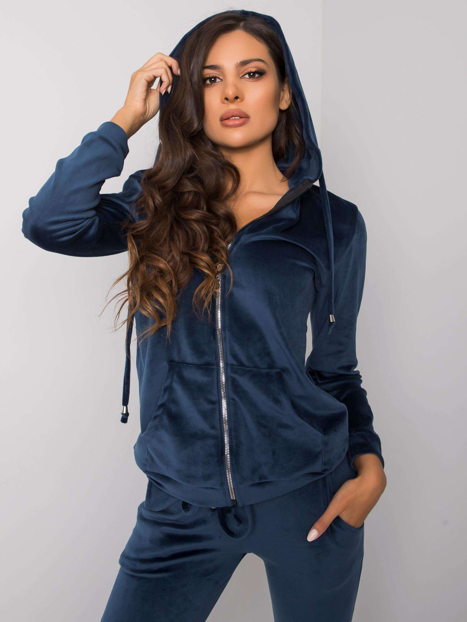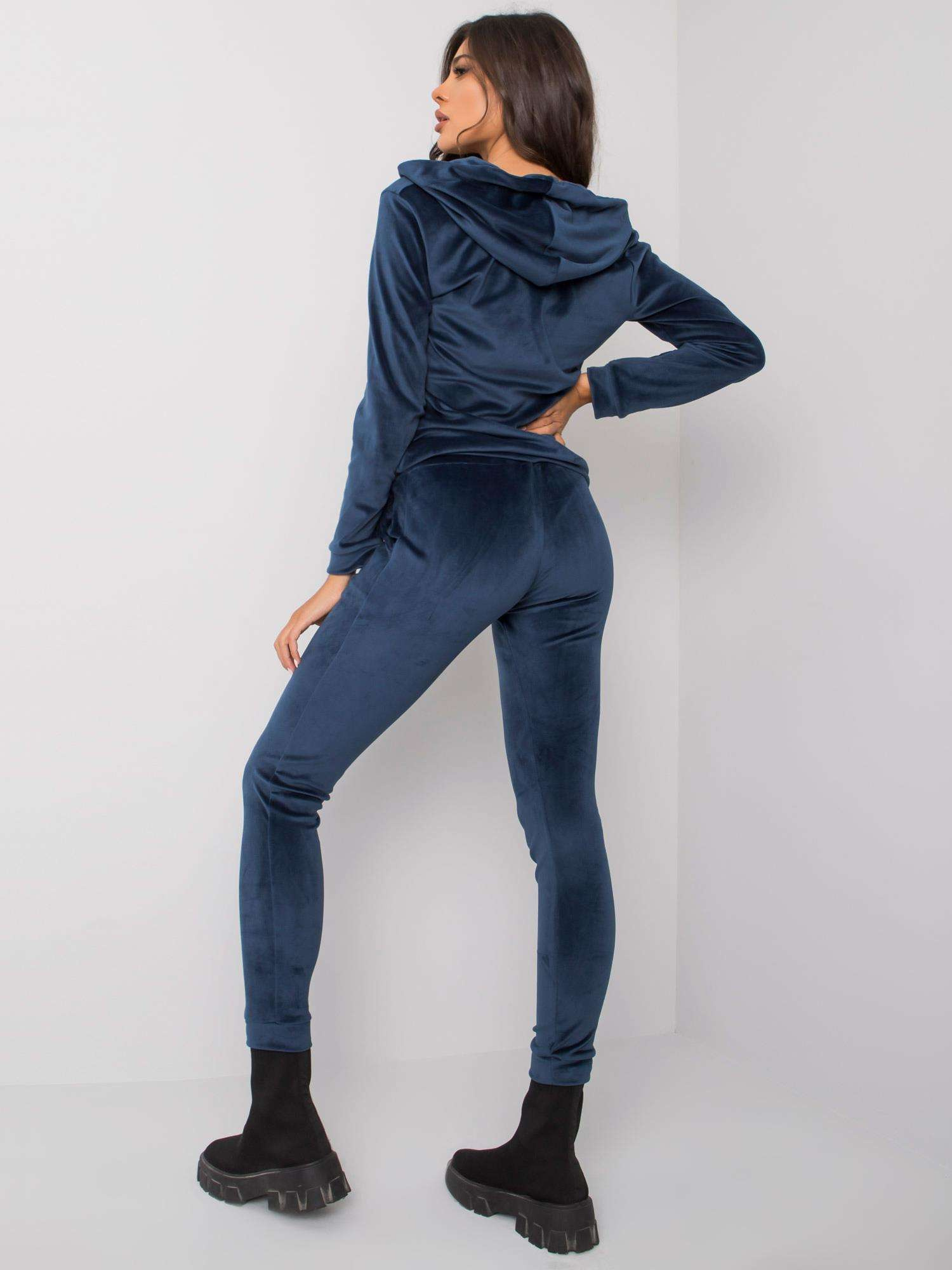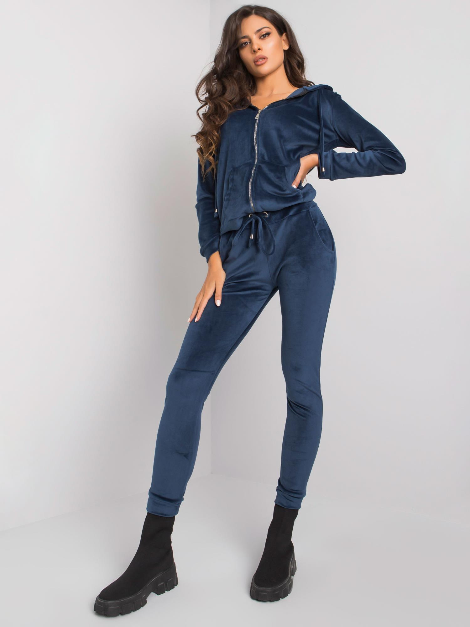 RUE PARIS Ciemnoniebieski welurowy komplet damski.