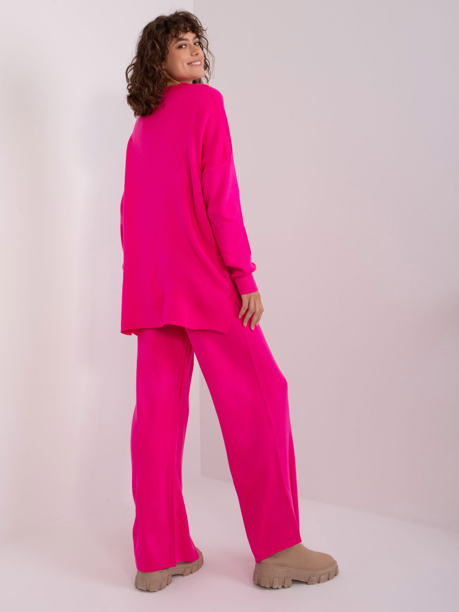 Wymiary kompletu w rozmiarze one size mierzone na płasko: szerokość swetra pod pachami – 80 cm, długość swetra – 75 cm, długość rękawa – 70 cm, szerokość w pasie – 35 cm, długość spodni – 111 cm, wysokość w pasie – 37 cm