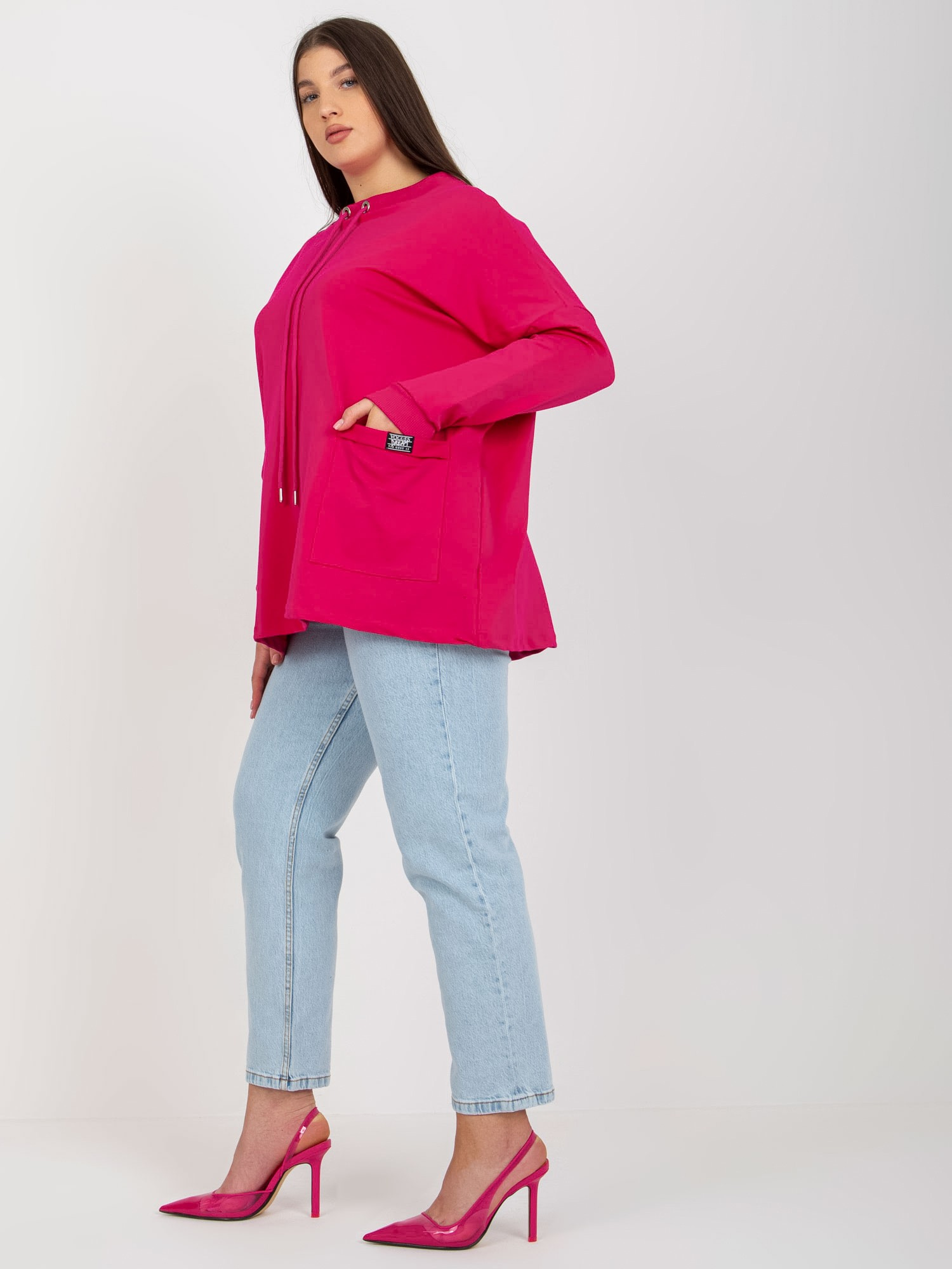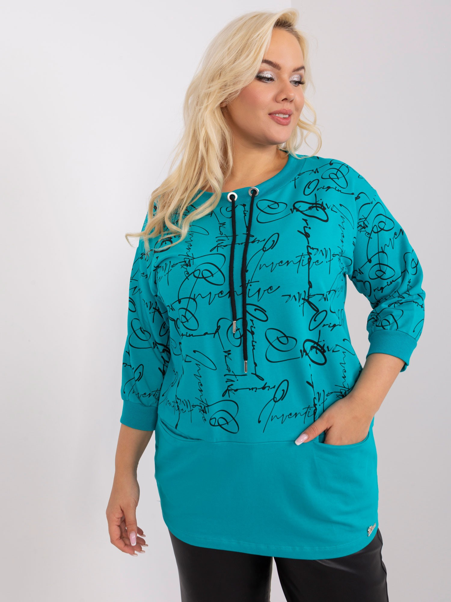 • Modelka: Modelka ma na sobie rozmiar one size. Wymiary modelki: wzrost 172 cm, biust 83 cm, talia 63 cm, biodra 91 cm
