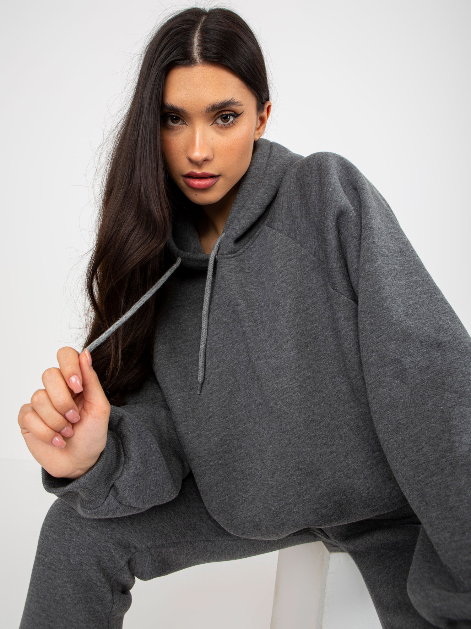 Ciemnoszary damski dresowy komplet basic oversize .
