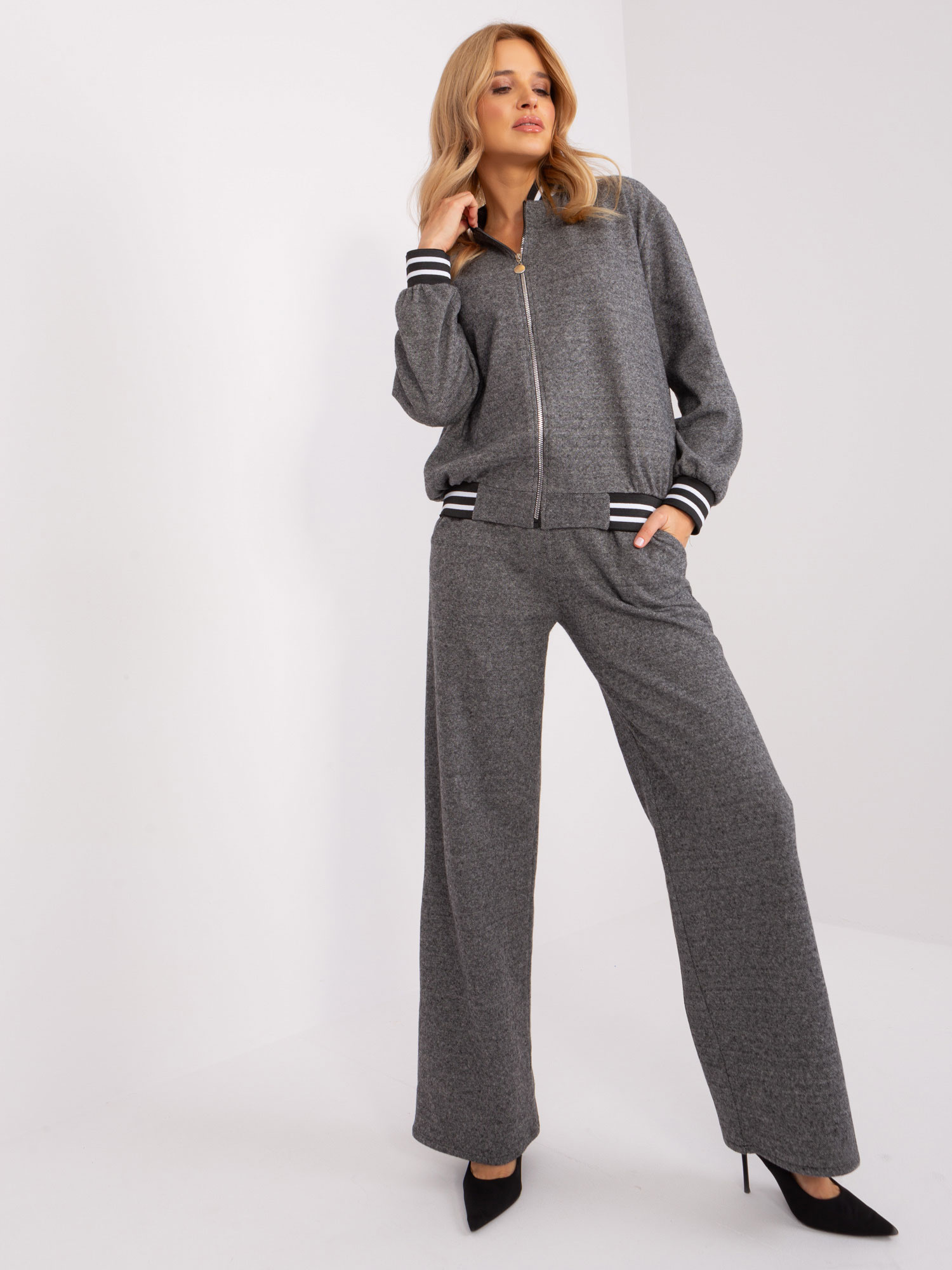 Ciemnoszary komplet casualowy z bluzą bomberką .
