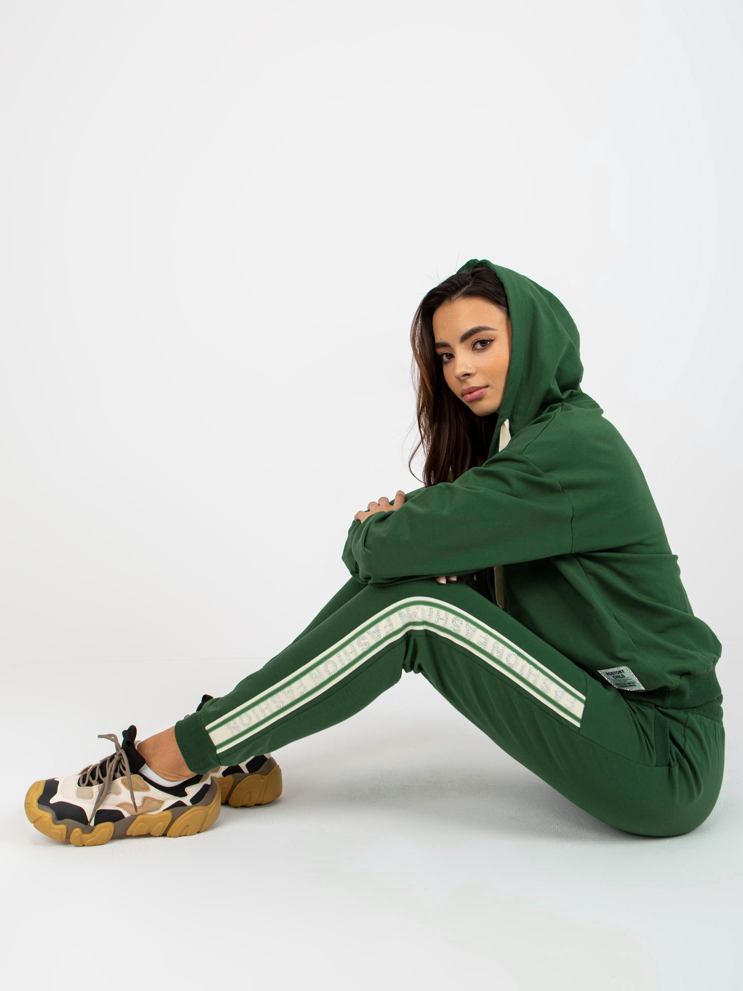 Ciemnozielony damski komplet casualowy z dekoltem w serek .