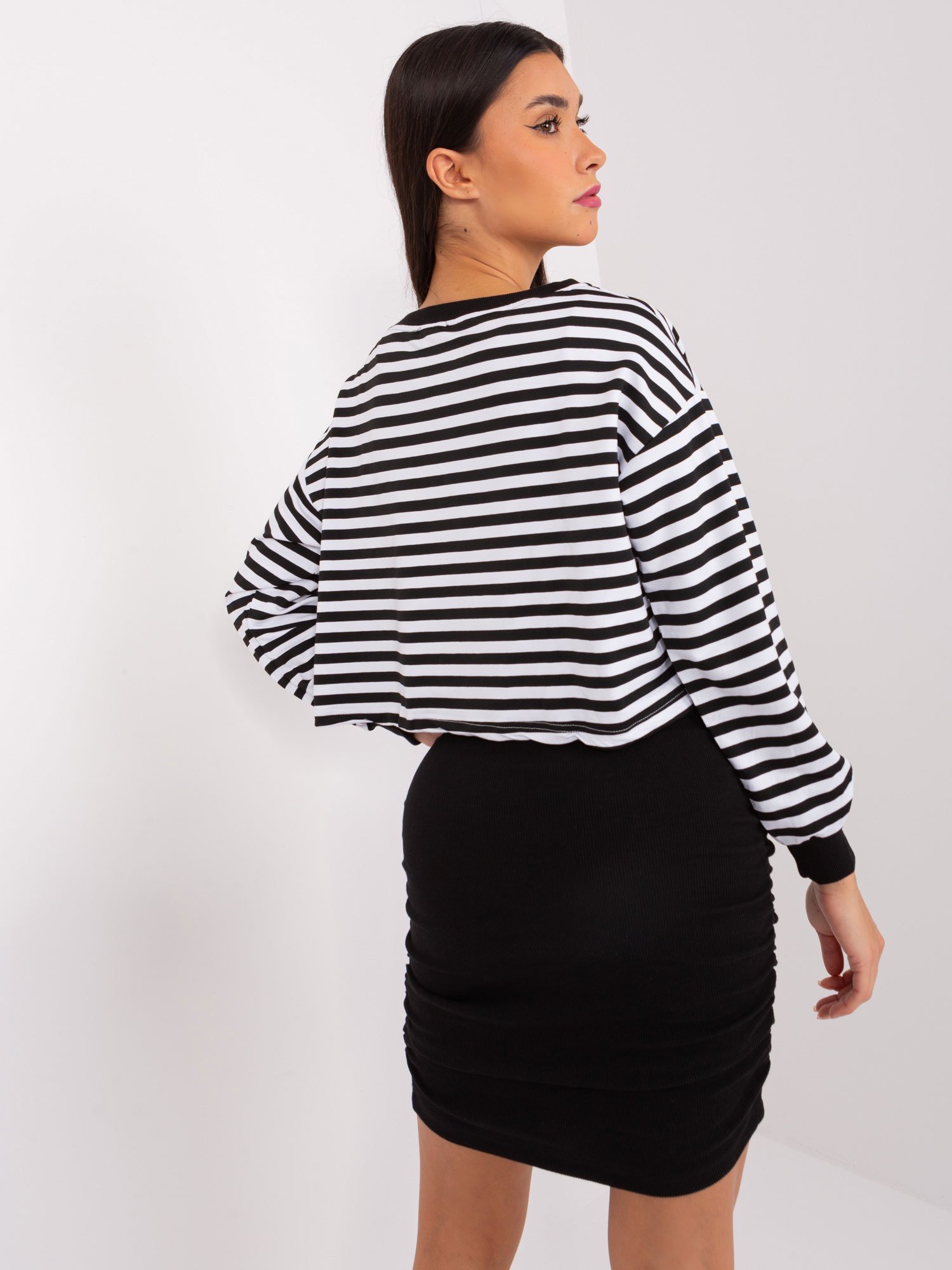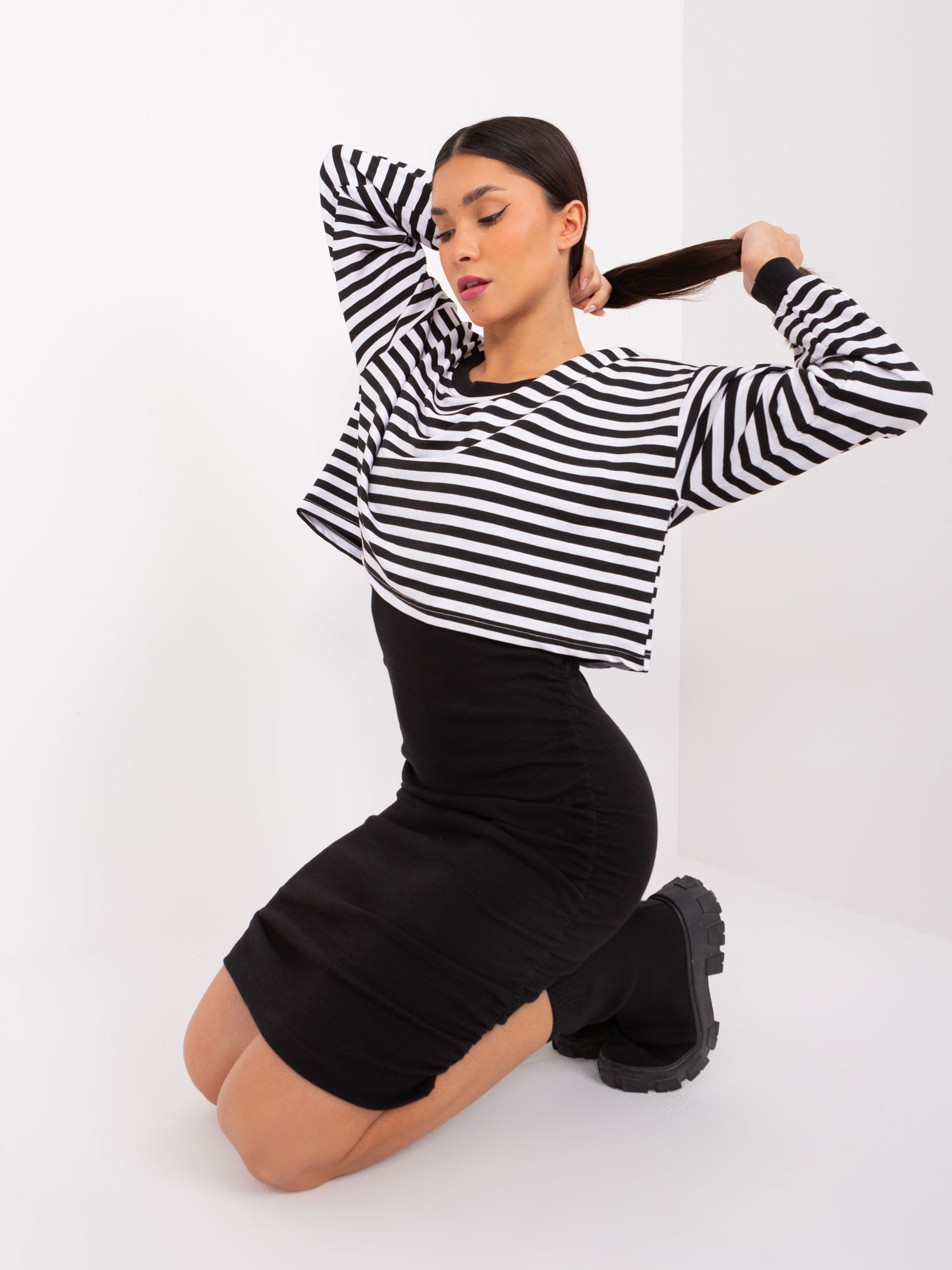 Czarno-biały komplet basic z sukienką prążkowaną .