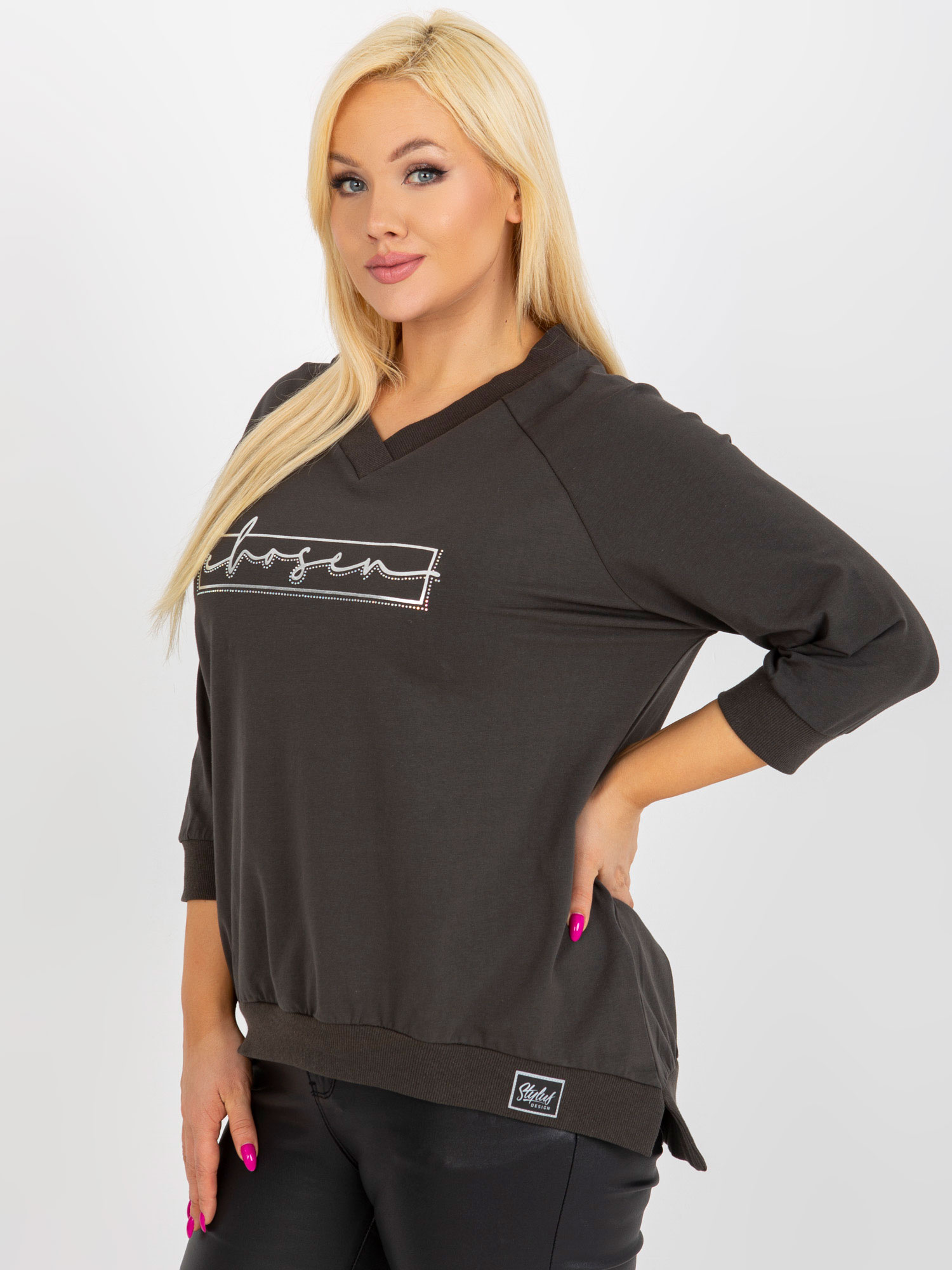 Modelka ma na sobie rozmiar S. Wymiary modelki: wzrost 175 cm, biust 85 cm, talia 65 cm, biodra 89 cm.