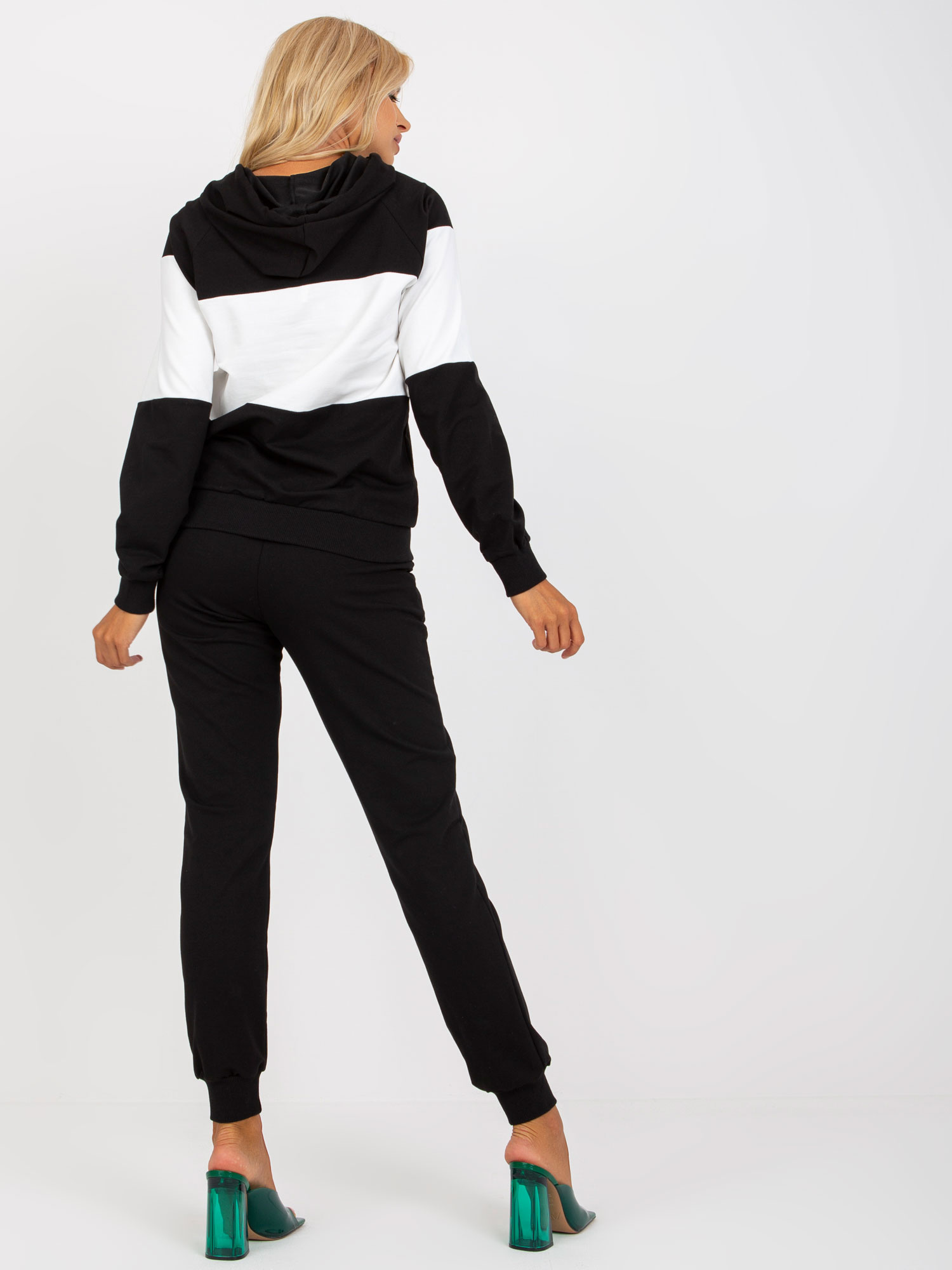 Czarno-zielony komplet dresowy z bluzą z kapturem .