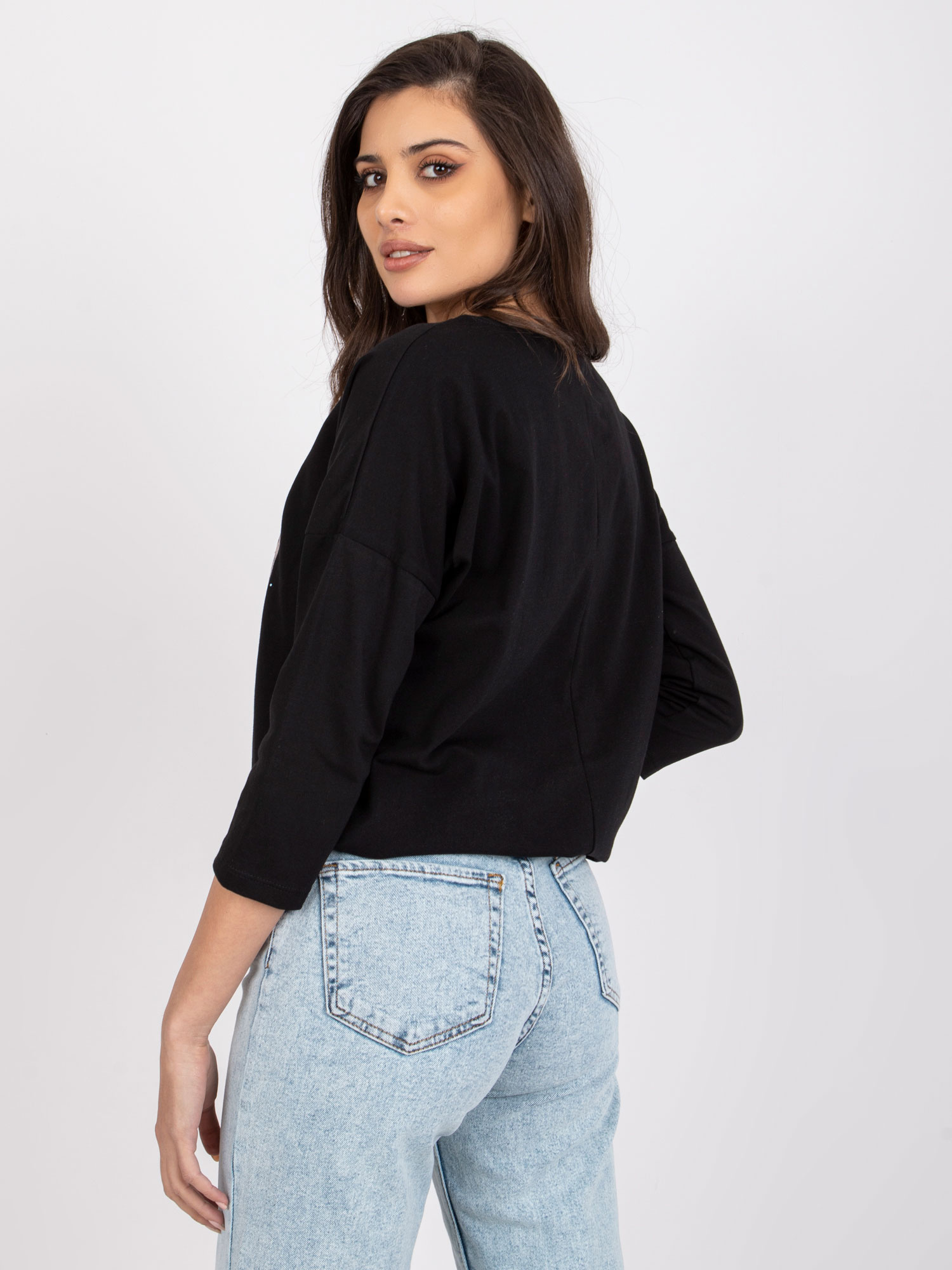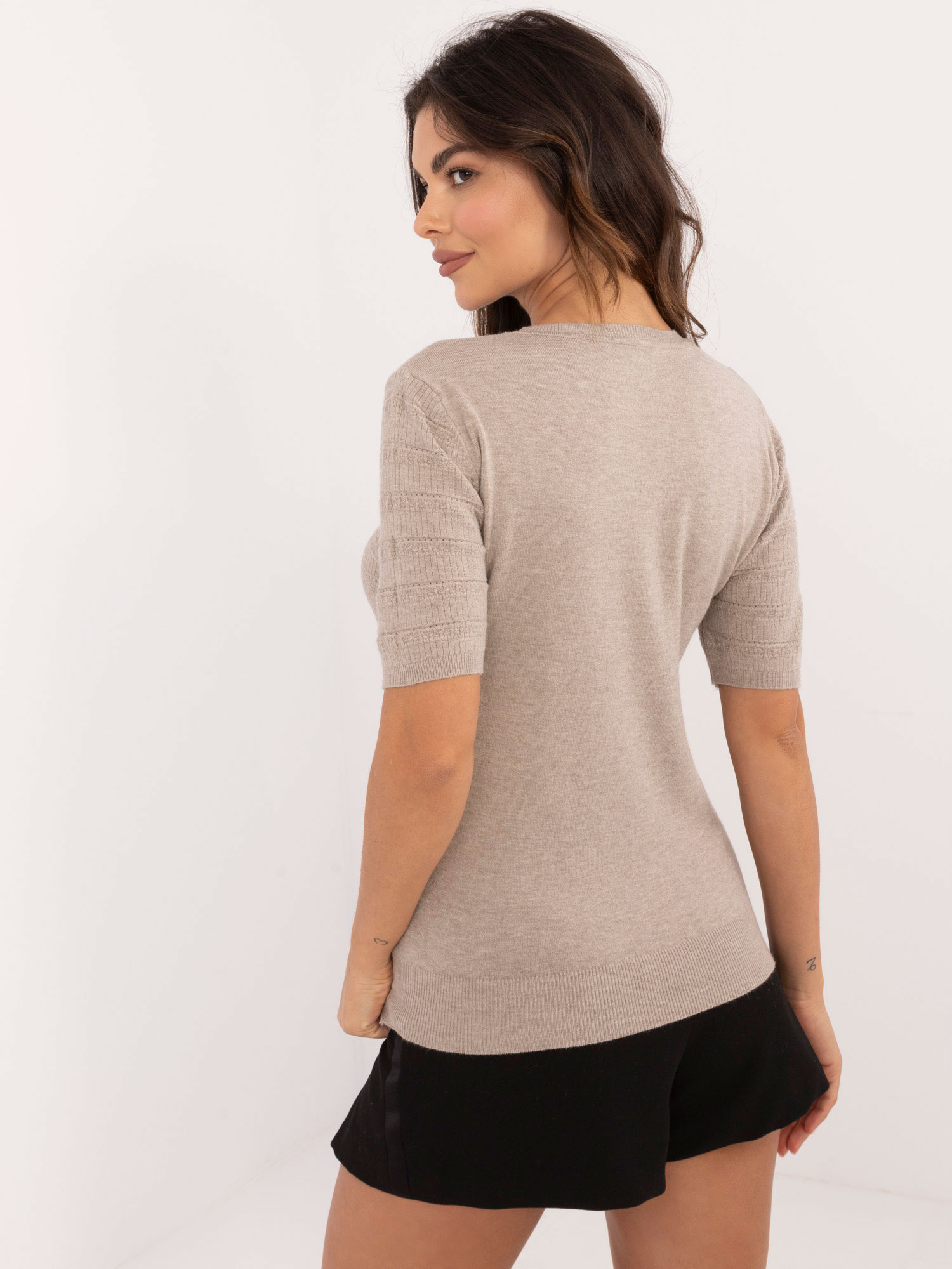 Wymiary topu w rozmiarze S mierzone na płasko: szerokość pod pachami – 34 cm, długość całkowita – 55 cm.