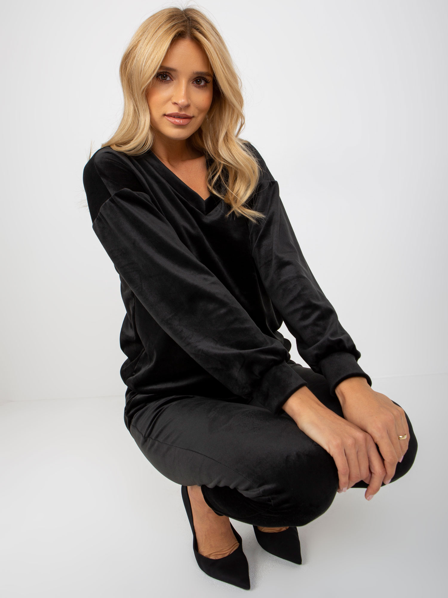 Czarny komplet welurowy z bluzą bez kaptura RUE PARIS .