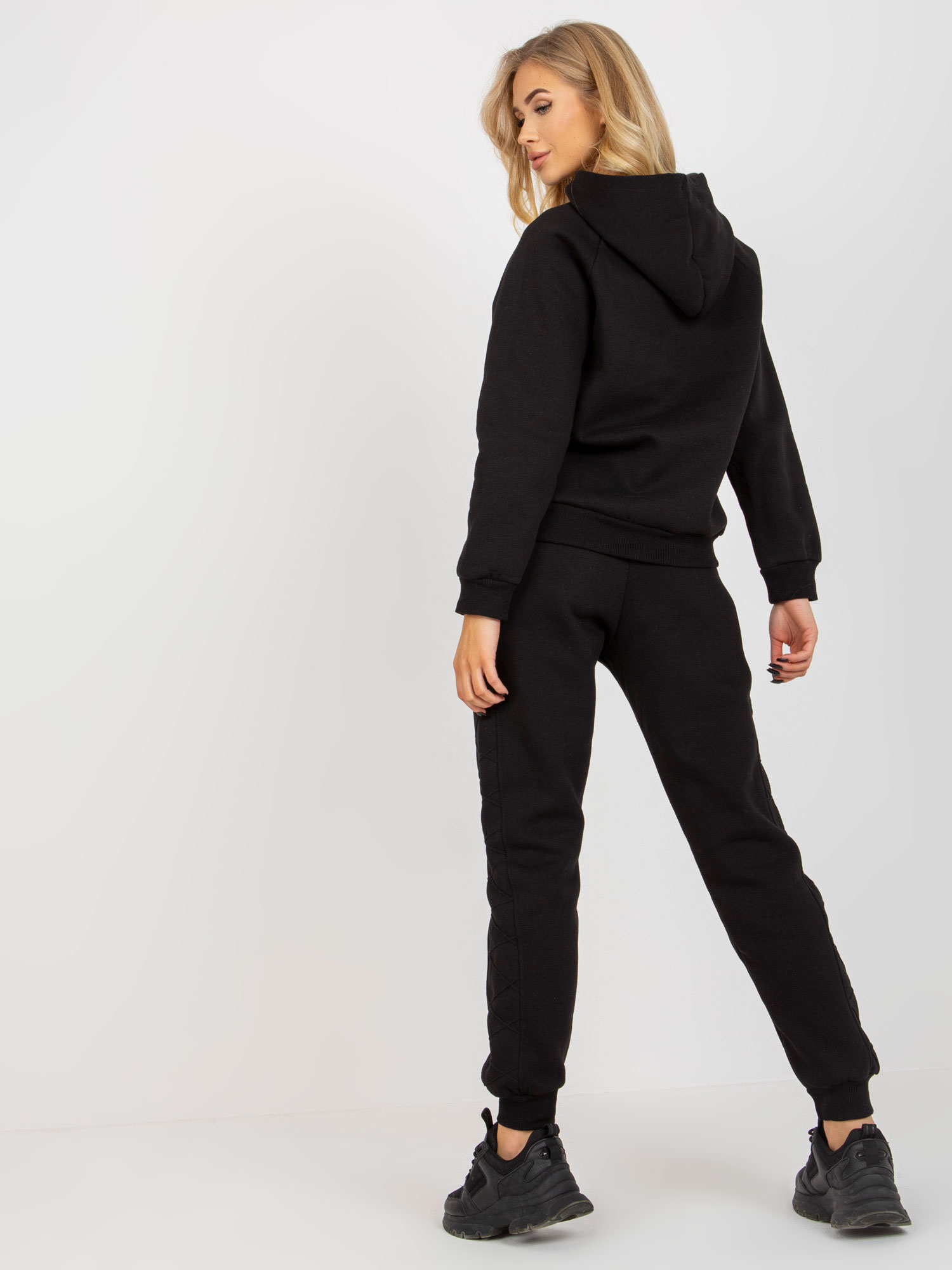 Czarny damski komplet dresowy z bluzą z kapturem .