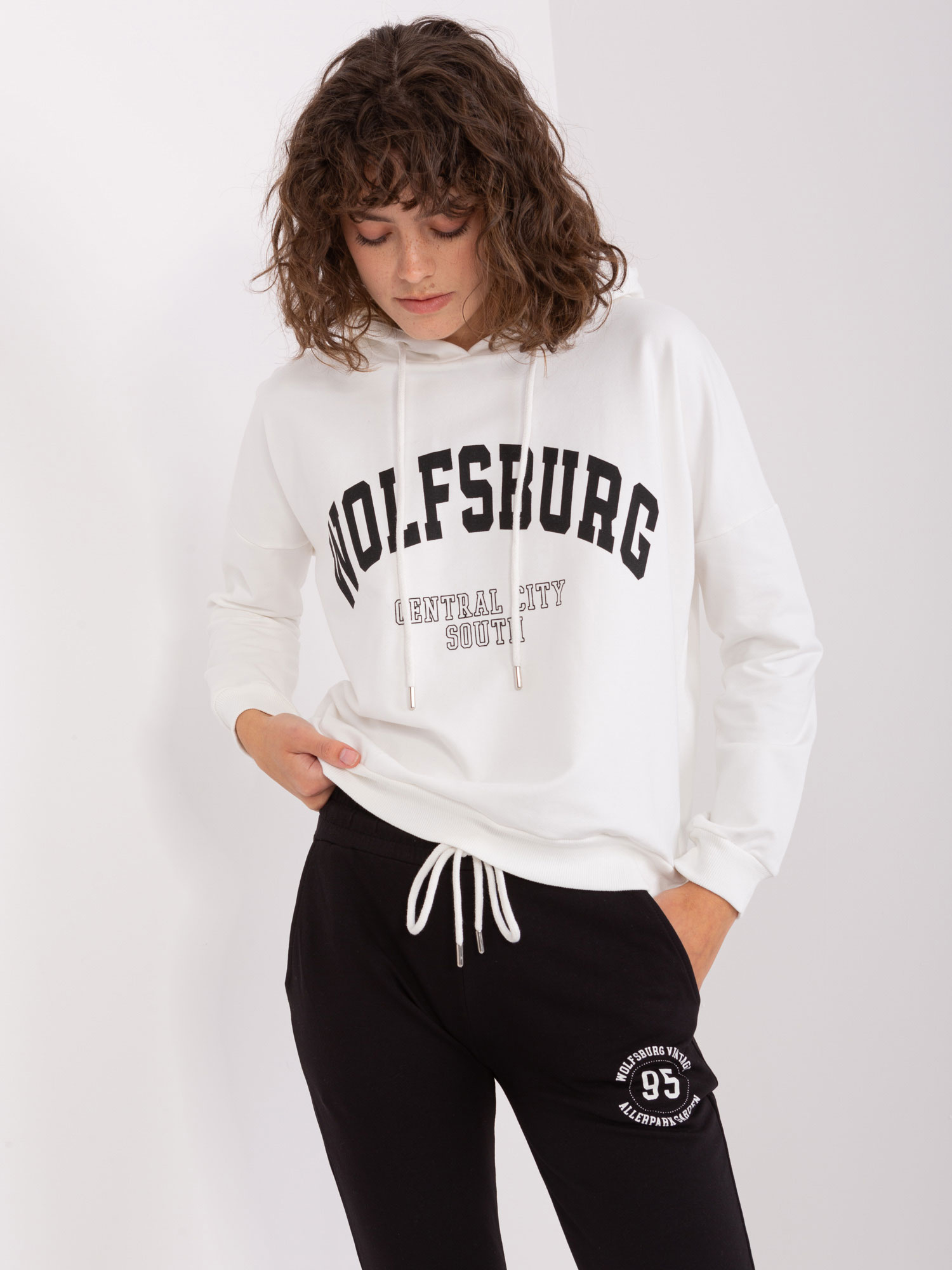 Ecru-czarny komplet damski dresowy z bluzą .