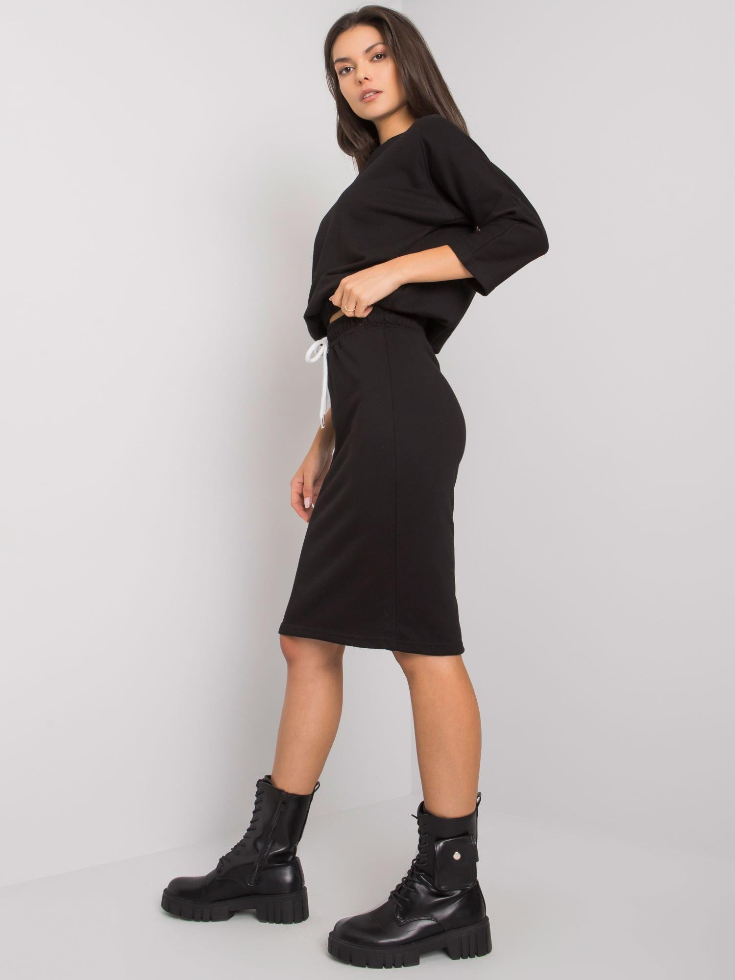 Wymiary kompletu w rozmiarze one size mierzone na płasko: szerokość pod pachami – 46 cm, długość bluzy – 49 cm, długość rękawa – 42 cm, szerokość w pasie – 36 cm, długość spódnicy – 60 cm