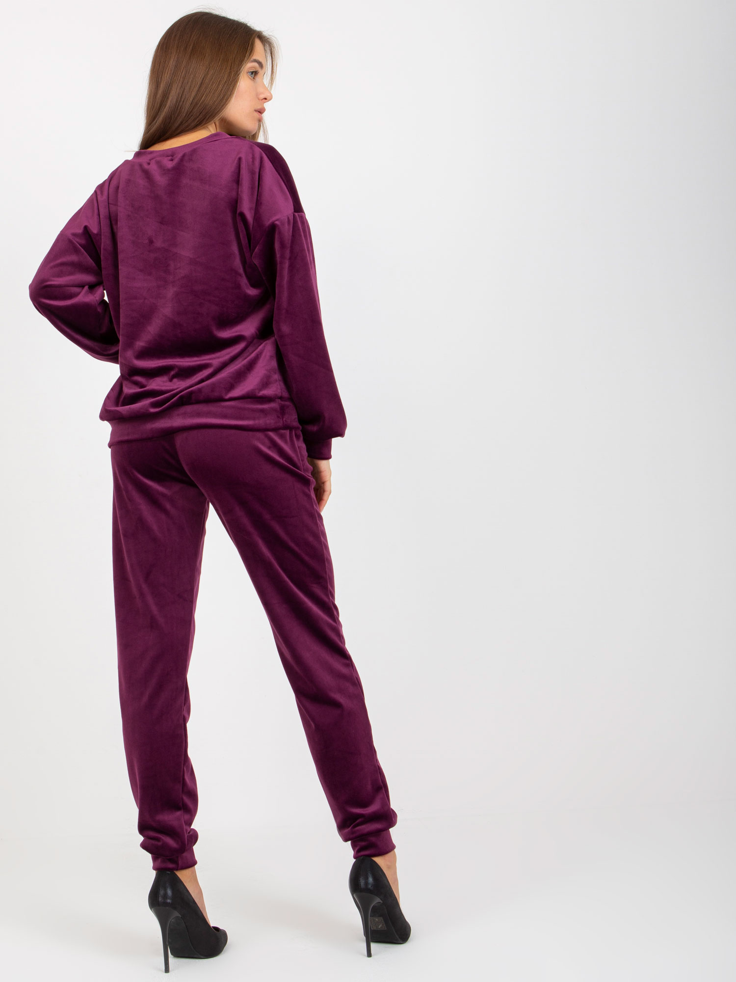 Fioletowy gładki komplet welurowy ze spodniami RUE PARIS .