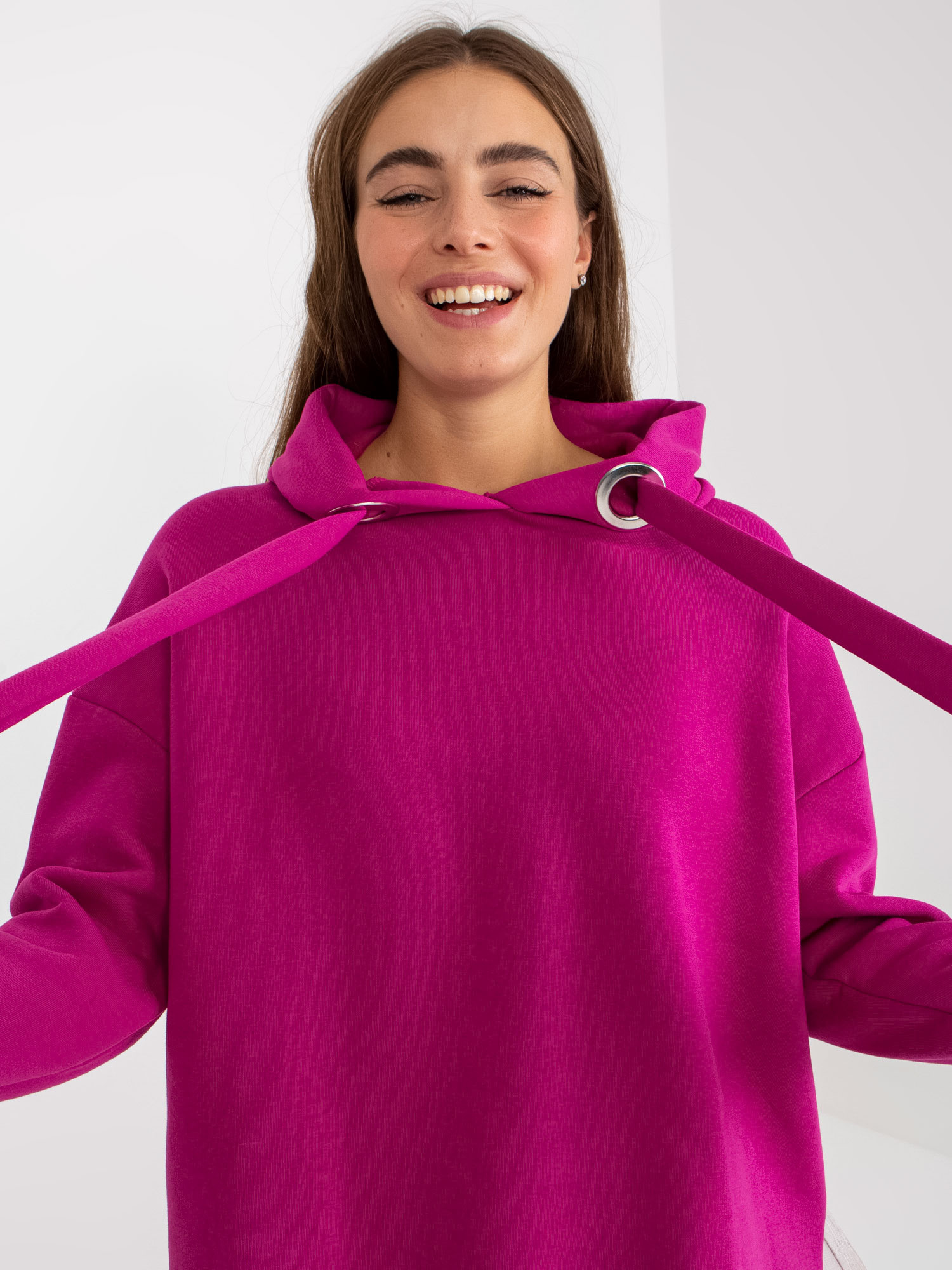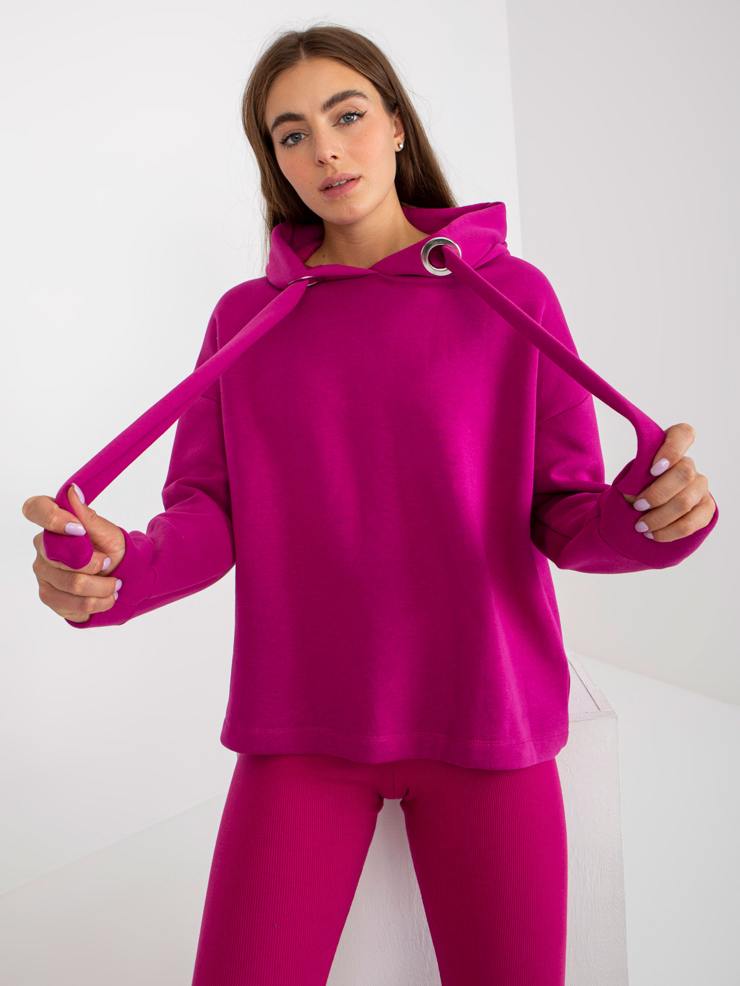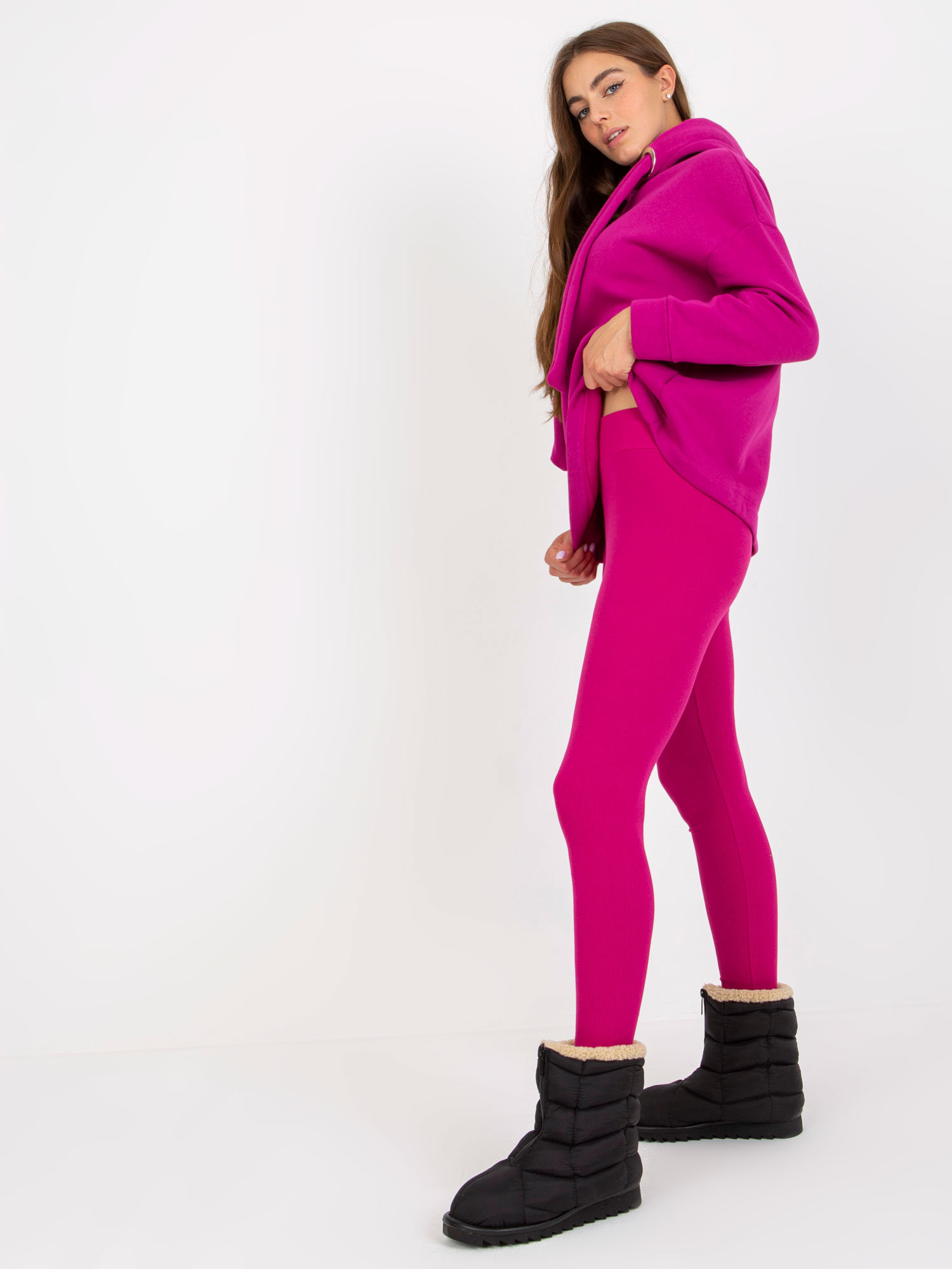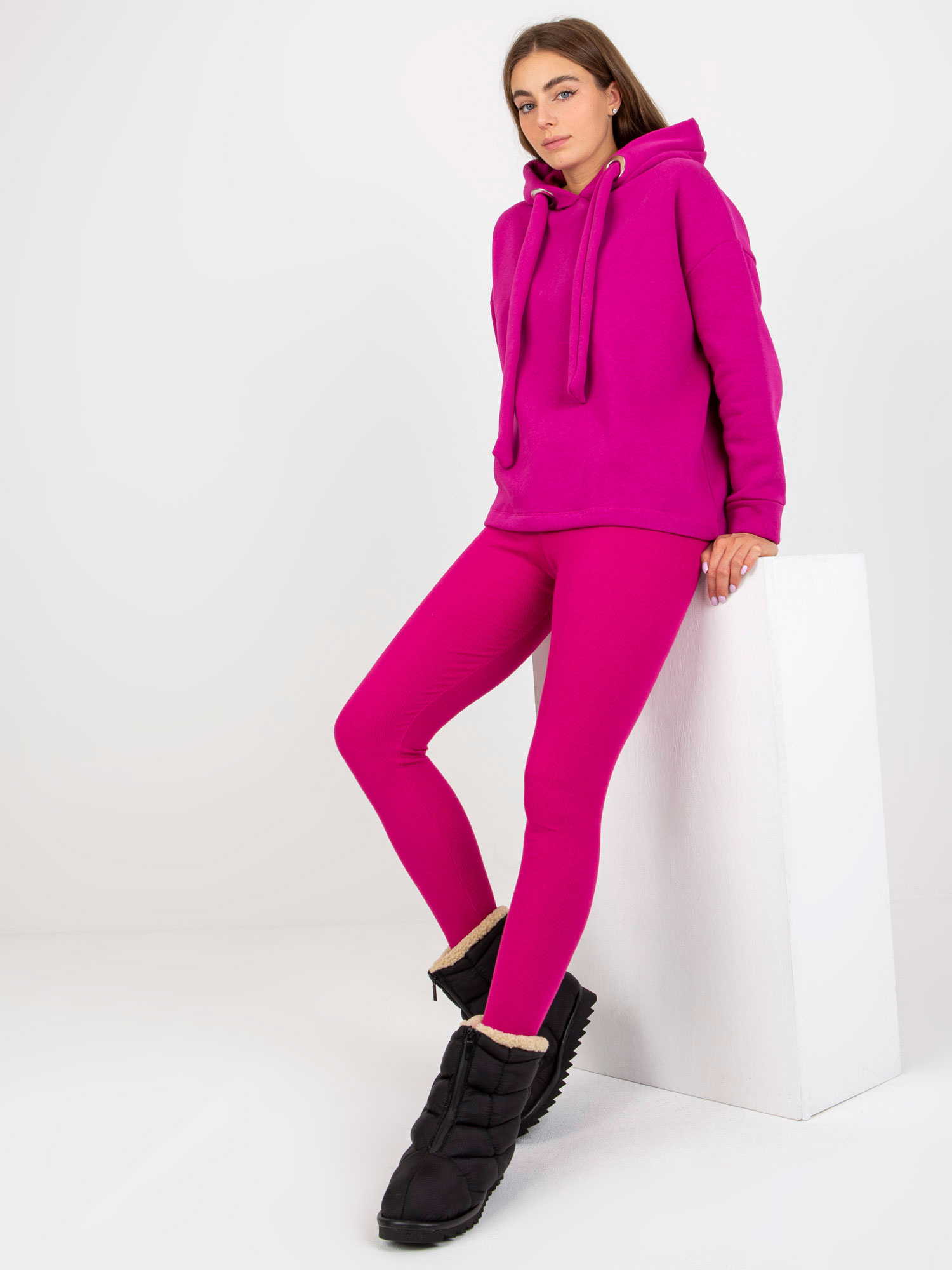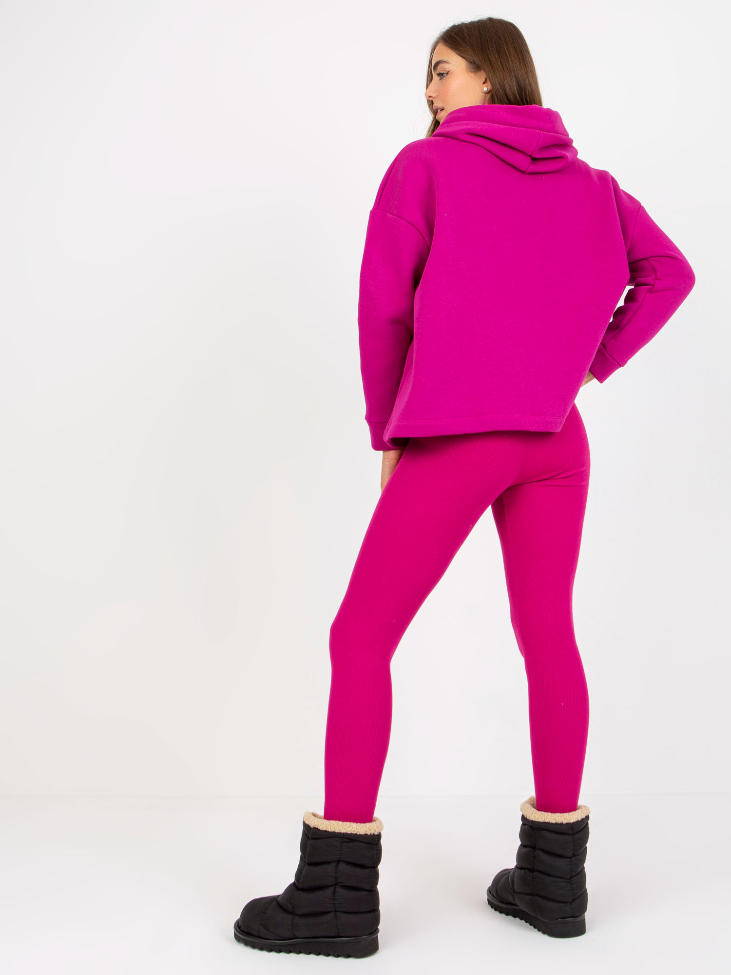 Fuksjowy gładki komplet dresowy z bluzą z kapturem .