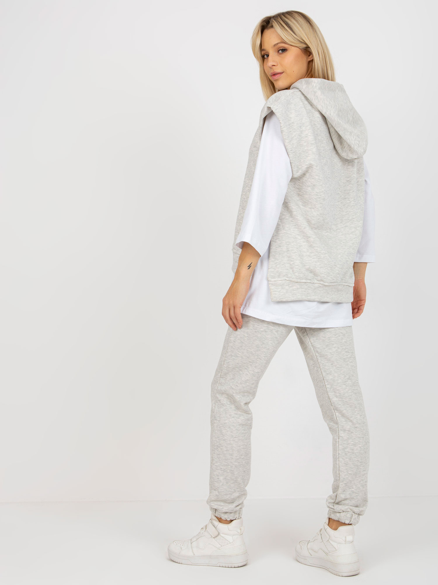 Jasnoszary trzyczęściowy komplet casualowy z bluzką .