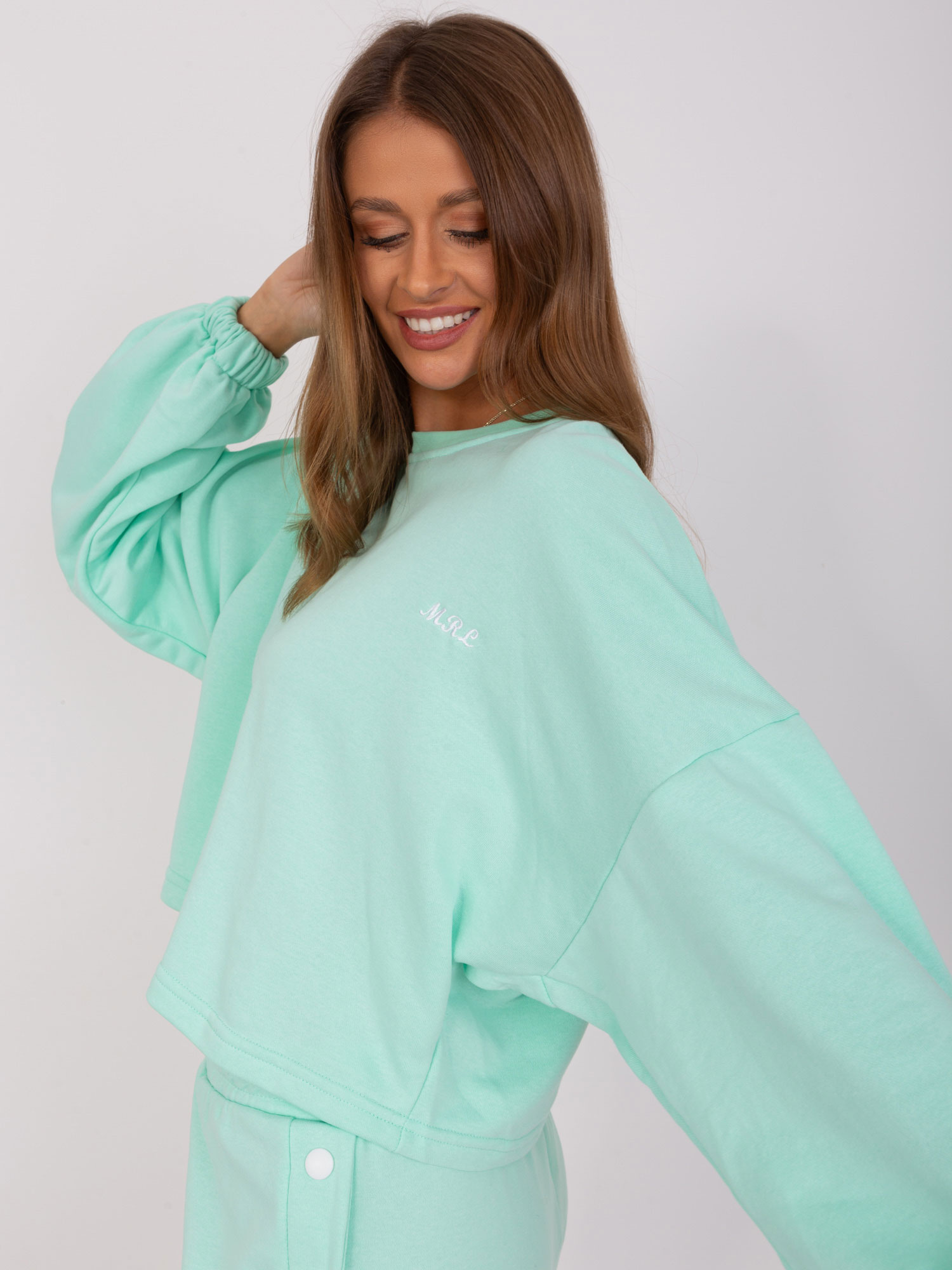 Wymiary kompletu w rozmiarze S/M mierzone na płasko: szerokość pod pachami – 48 cm, długość bluzy – 62 cm, długość rękawa – 58 cm, szerokość w pasie – 36 cm, długość spodni – 96 cm.