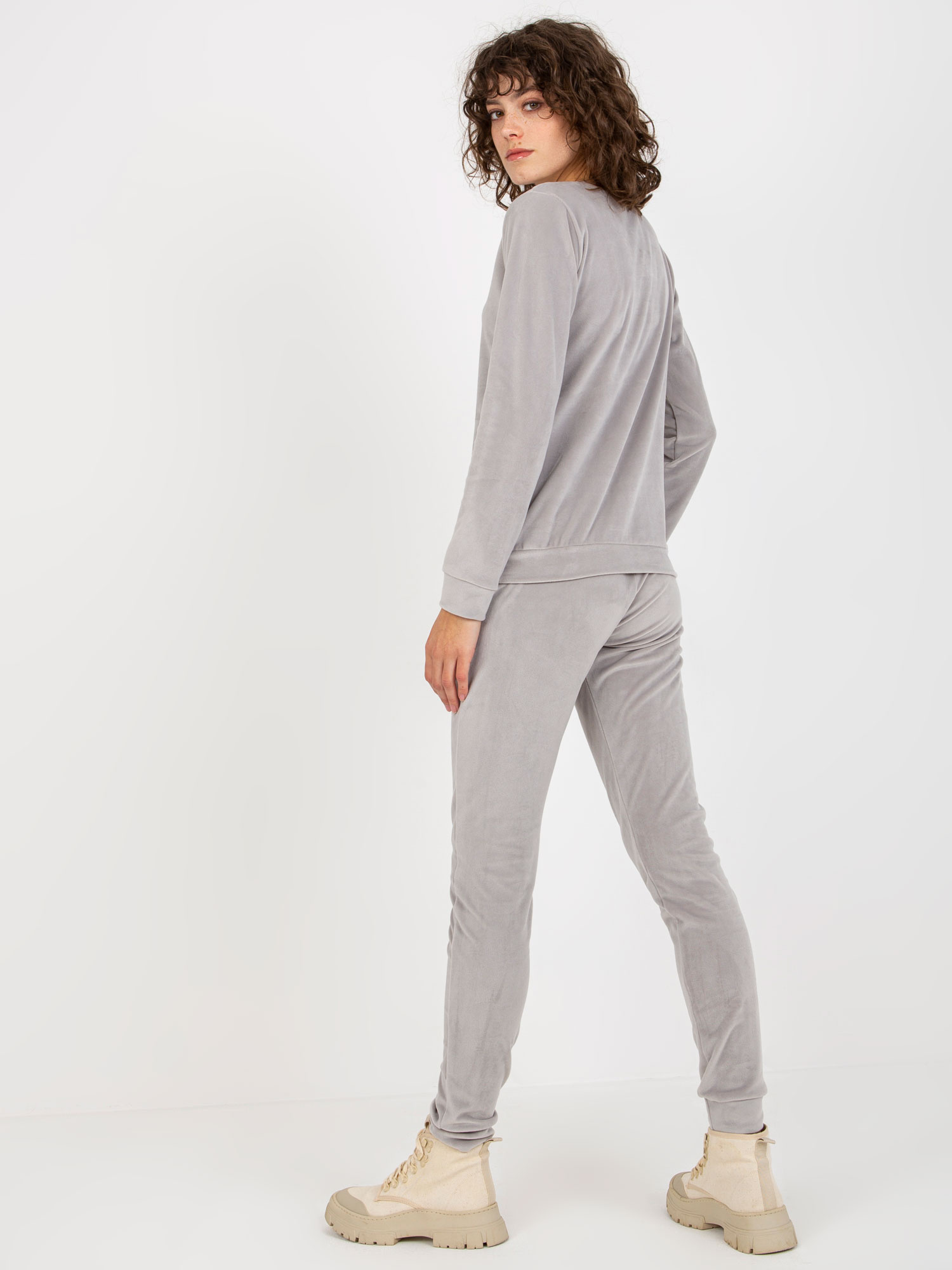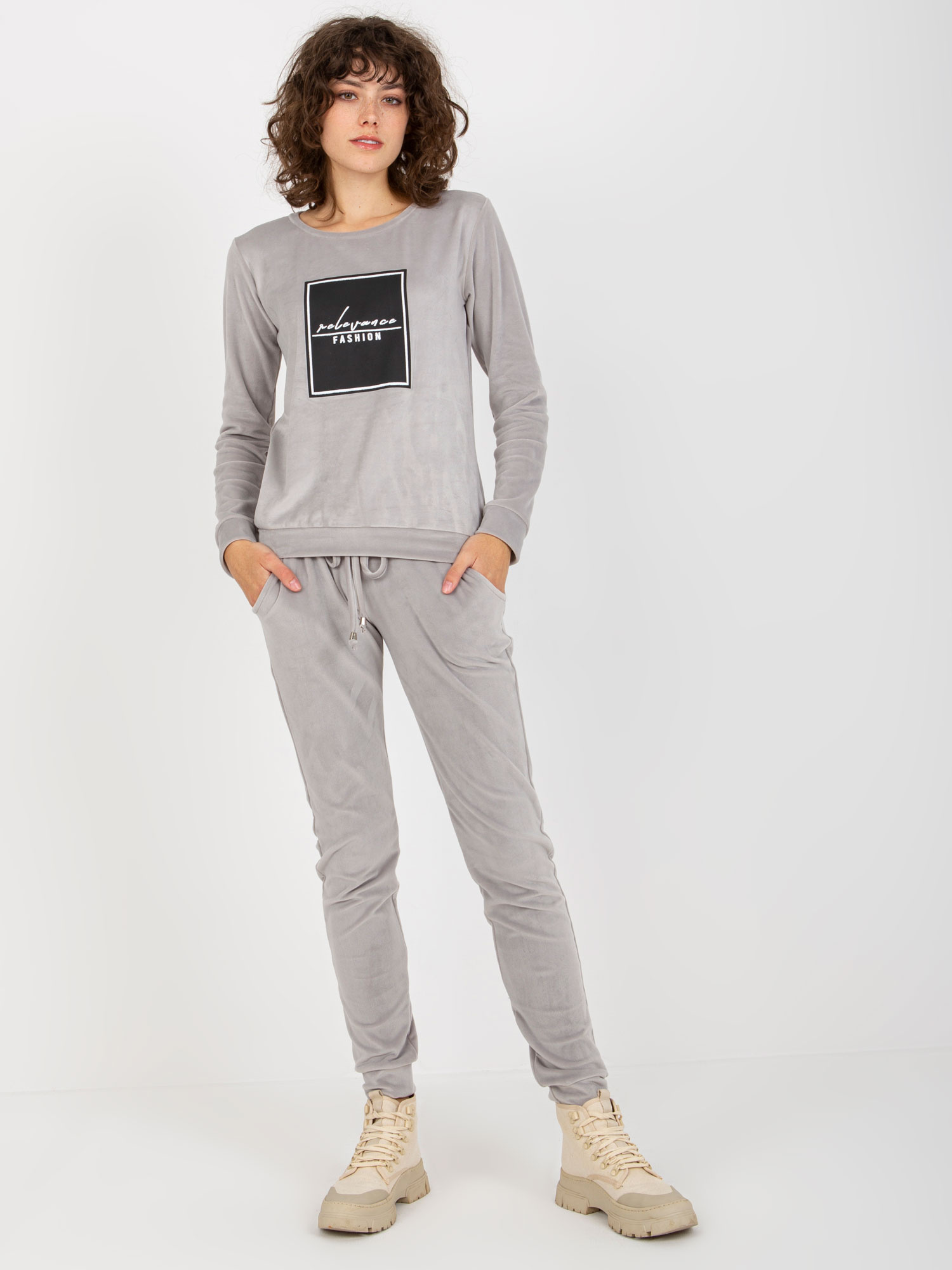 Jasnoszary damski komplet welurowy z nadrukiem .