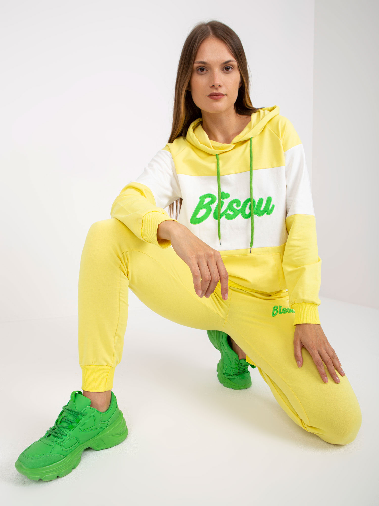 Żółto-zielony komplet dresowy z bluzą z kapturem .