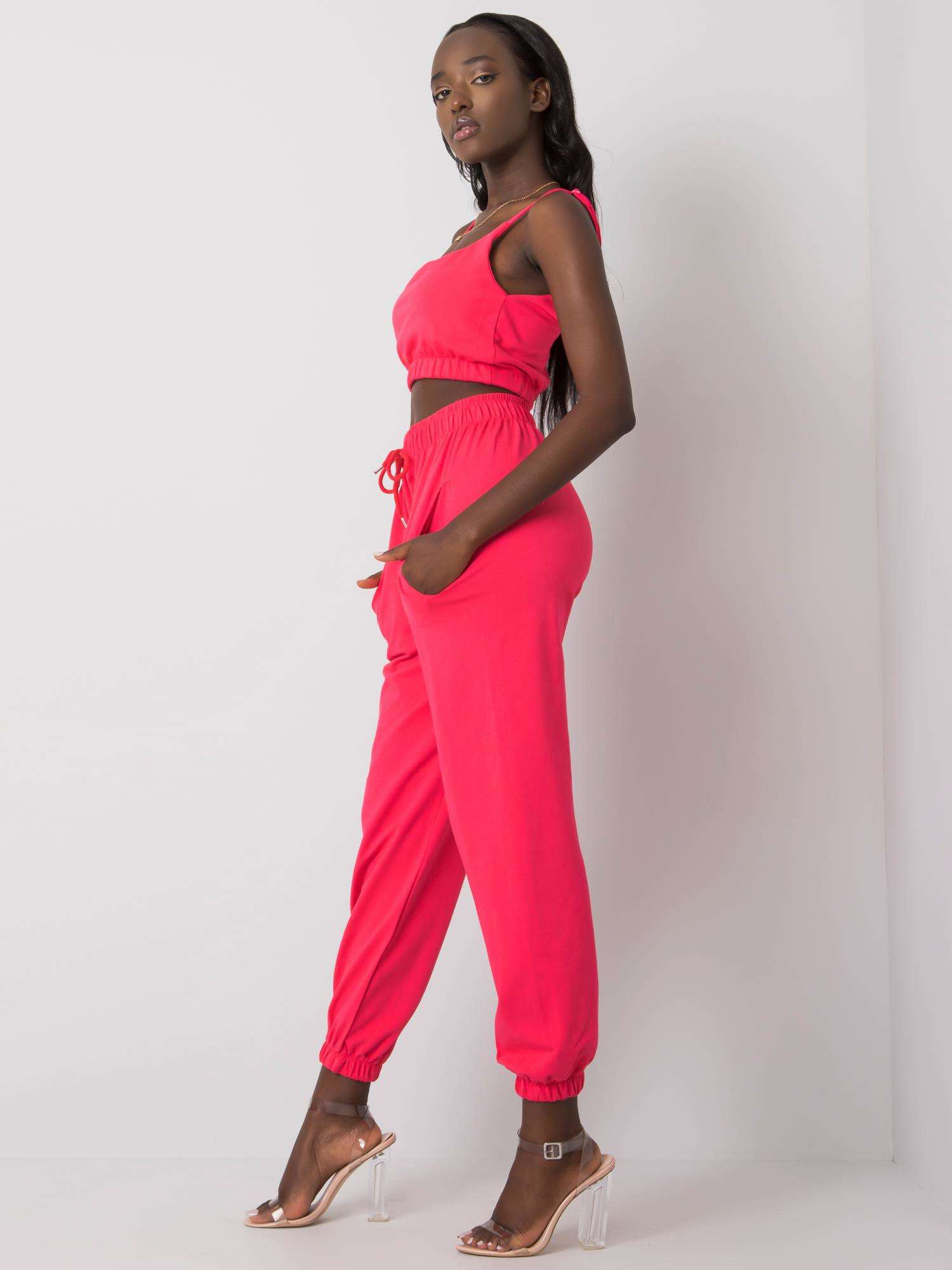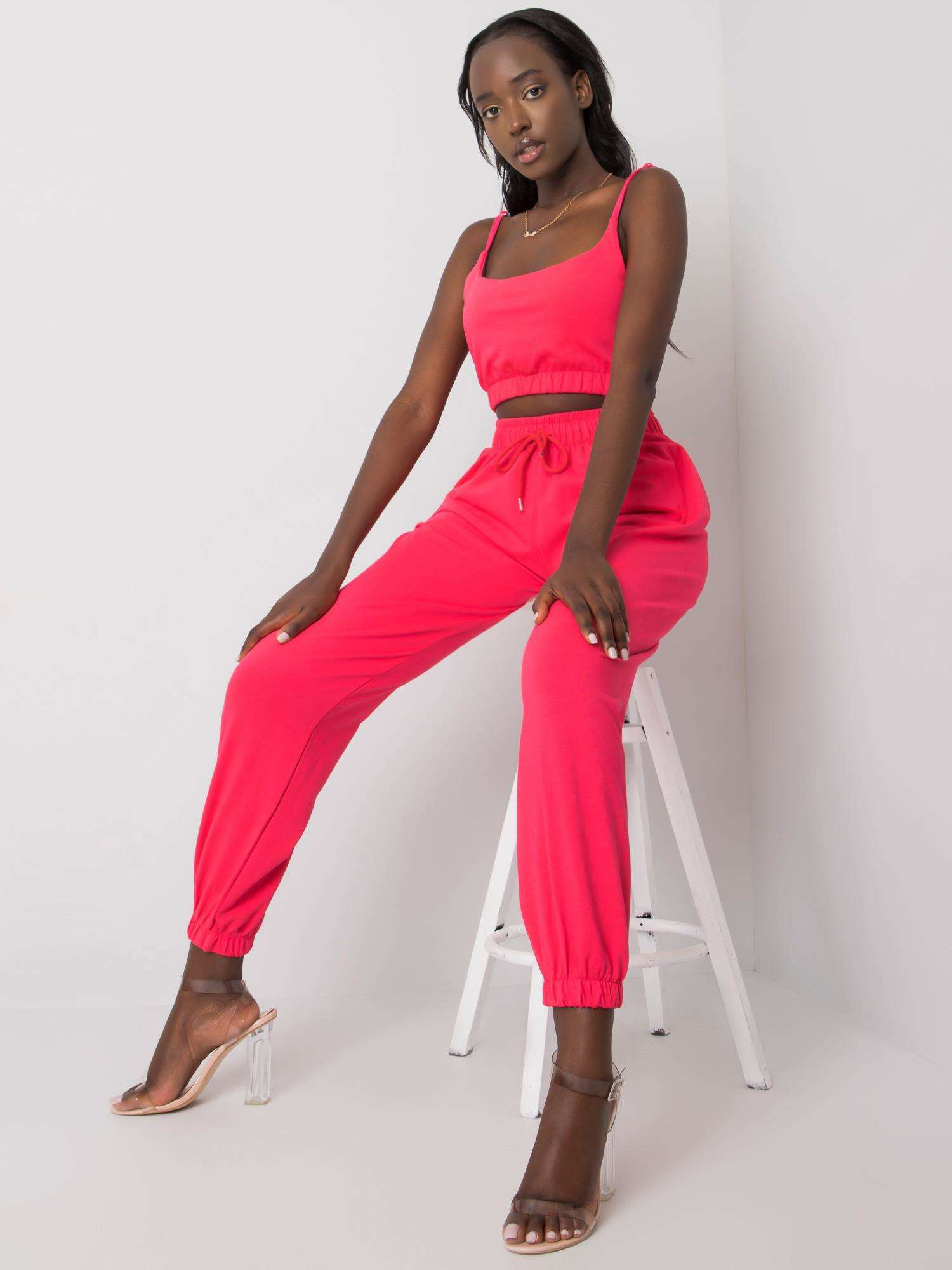 Wymiary kompletu w rozmiarze S mierzone na płasko: szerokość pod pachami – 38 cm, długość topu – 33 cm, szerokość w pasie – 33 cm, długość spodni – 89 cm
