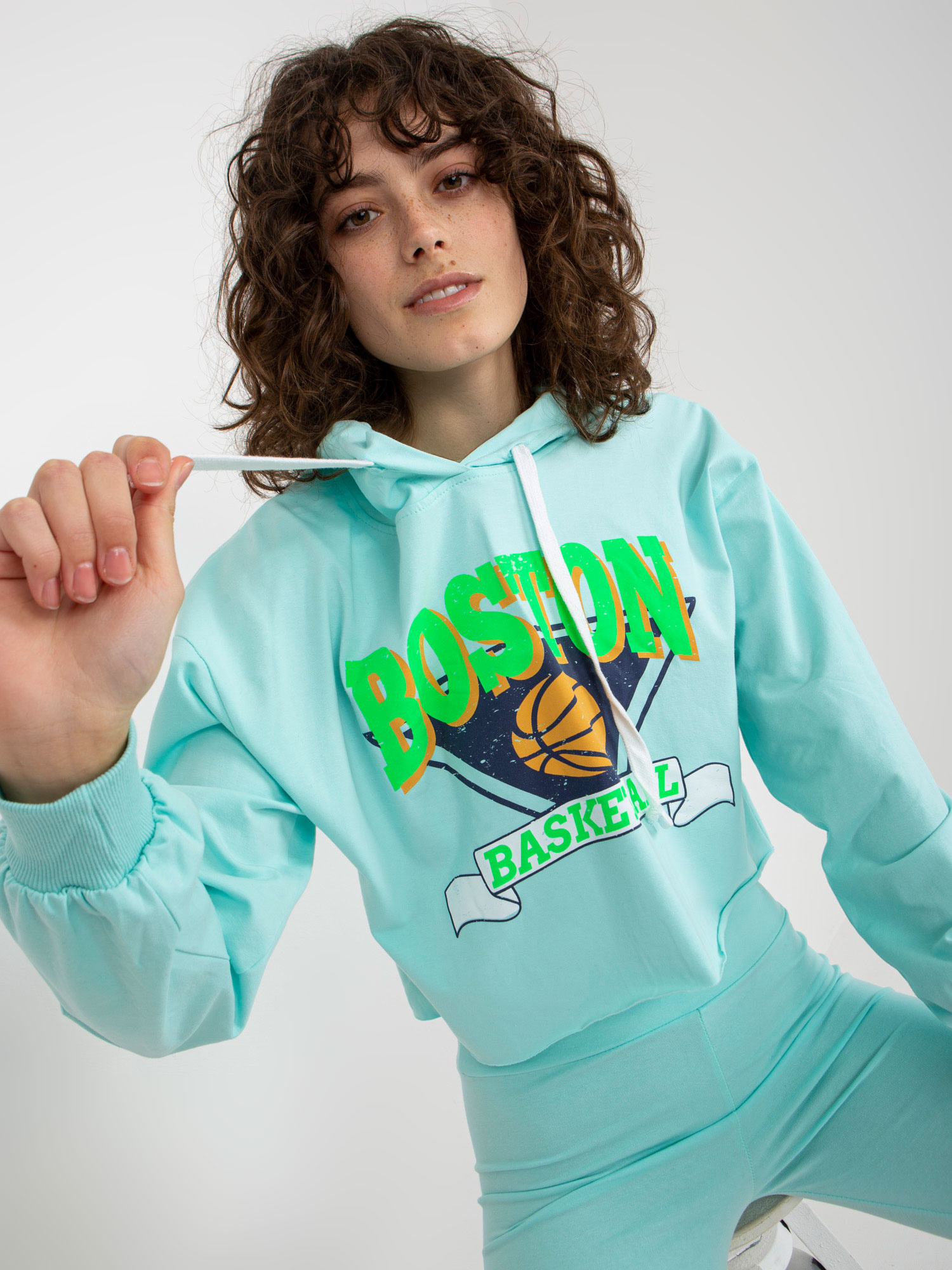 Miętowy komplet casualowy z bluzą i kolarkami .