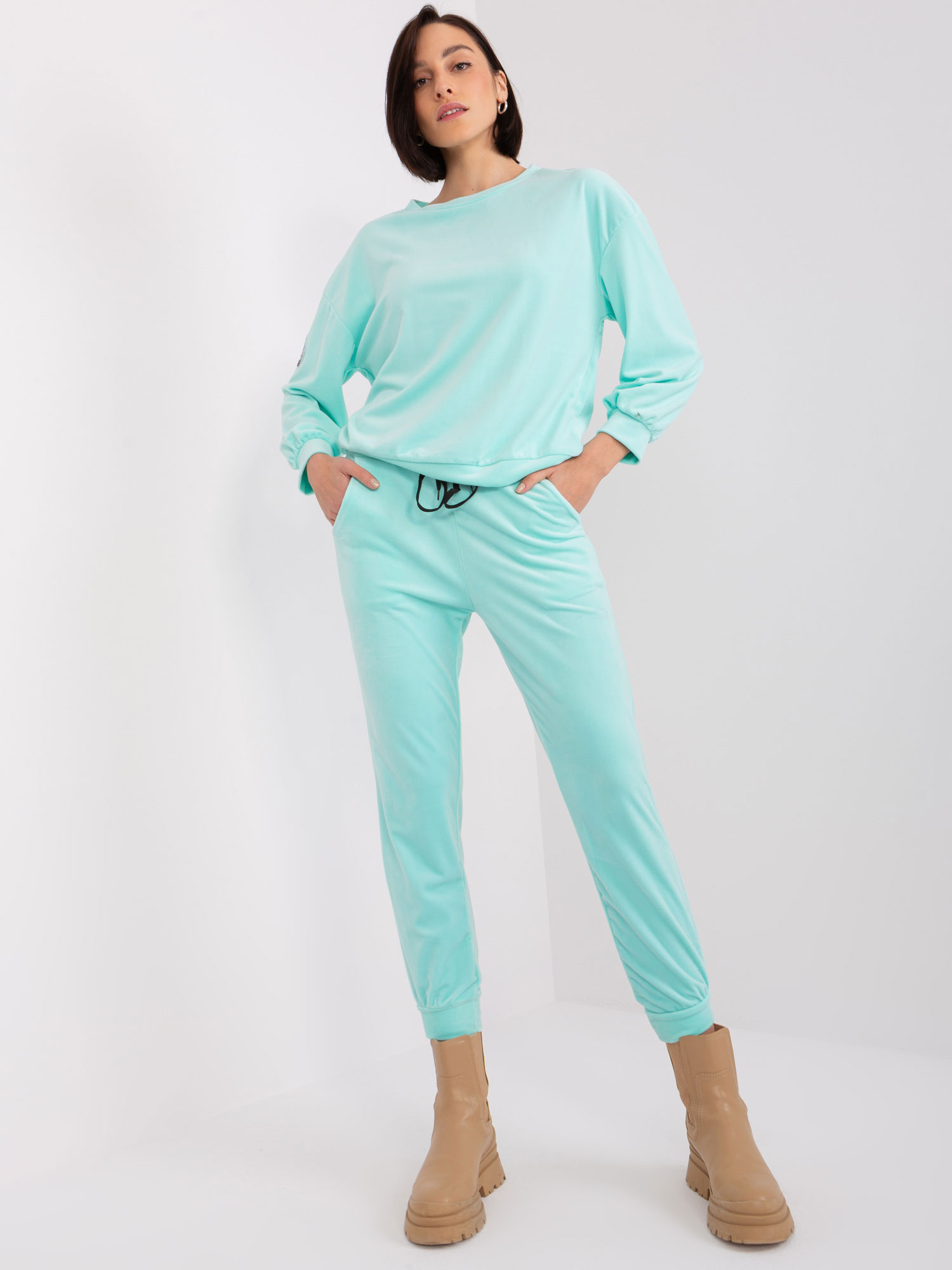 Miętowy komplet welurowy z bluzą bez kaptura .