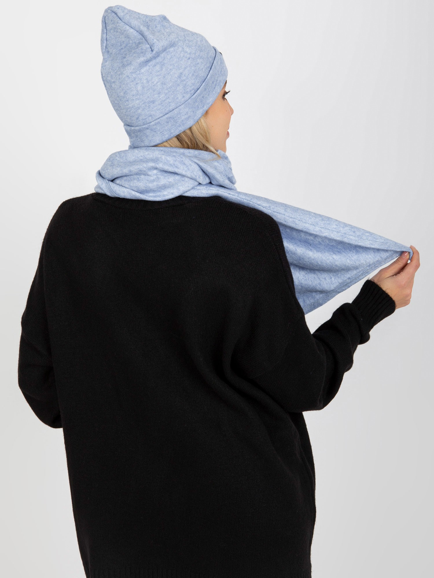 Niebieski komplet zimowy z szalikiem i czapką .