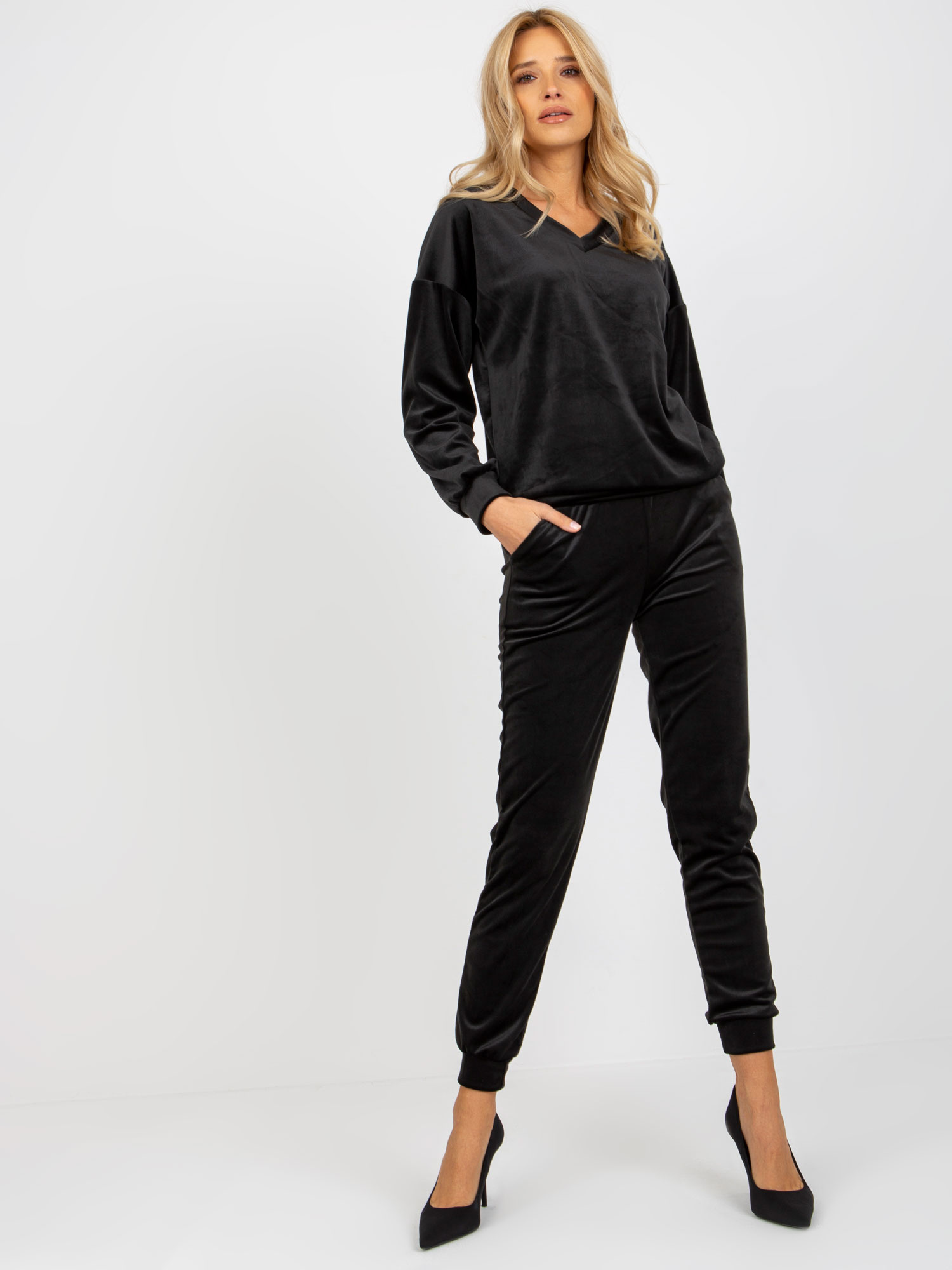Wymiary kompletu w rozmiarze one size mierzone na płasko: szerokość pod pachami – 58 cm, długość bluzy – 60 cm, długość rękawa – 65 cm, szerokość w pasie – 34 cm, długość spodni – 99 cm.