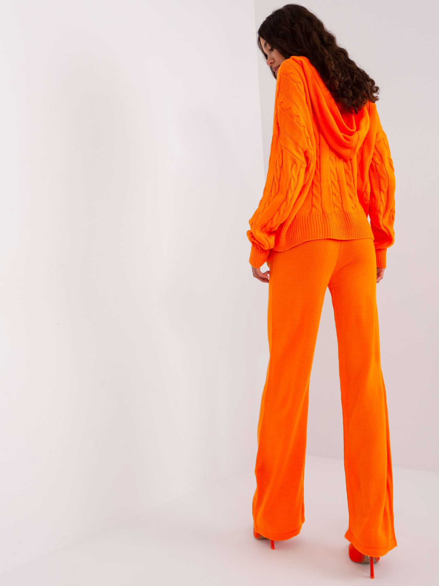 Pomarańczowy komplet casualowy ze swetrem z kapturem .