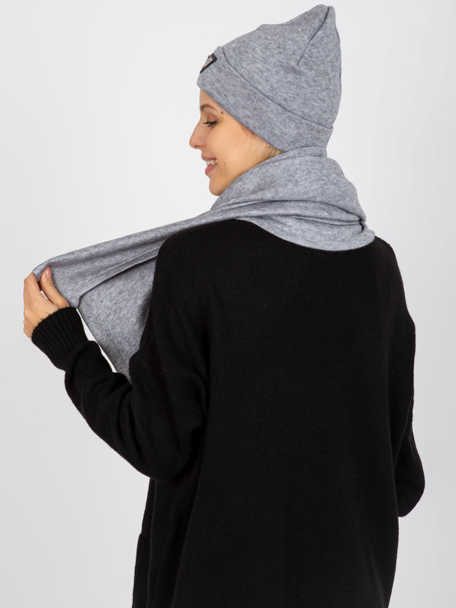 Szary komplet zimowy z szalikiem i czapką .