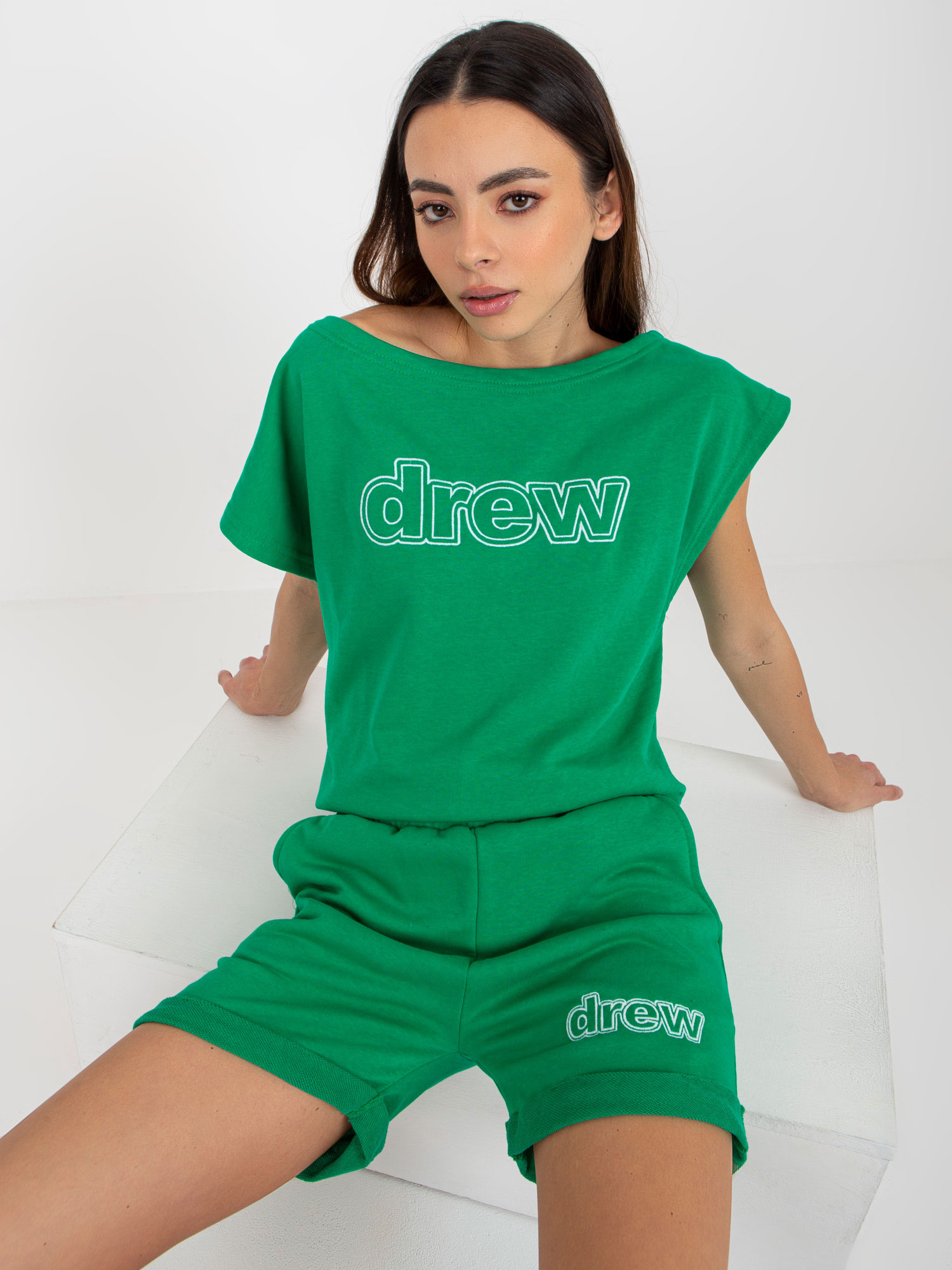 Wymiary kompletu w rozmiarze one size mierzone na płasko: szerokość bluzki pod pachami – 59 cm, długość bluzki – 54 cm, szerokość szortów w pasie – 33 cm, długość szortów – 39 cm, wysokość stanu – 30 cm.