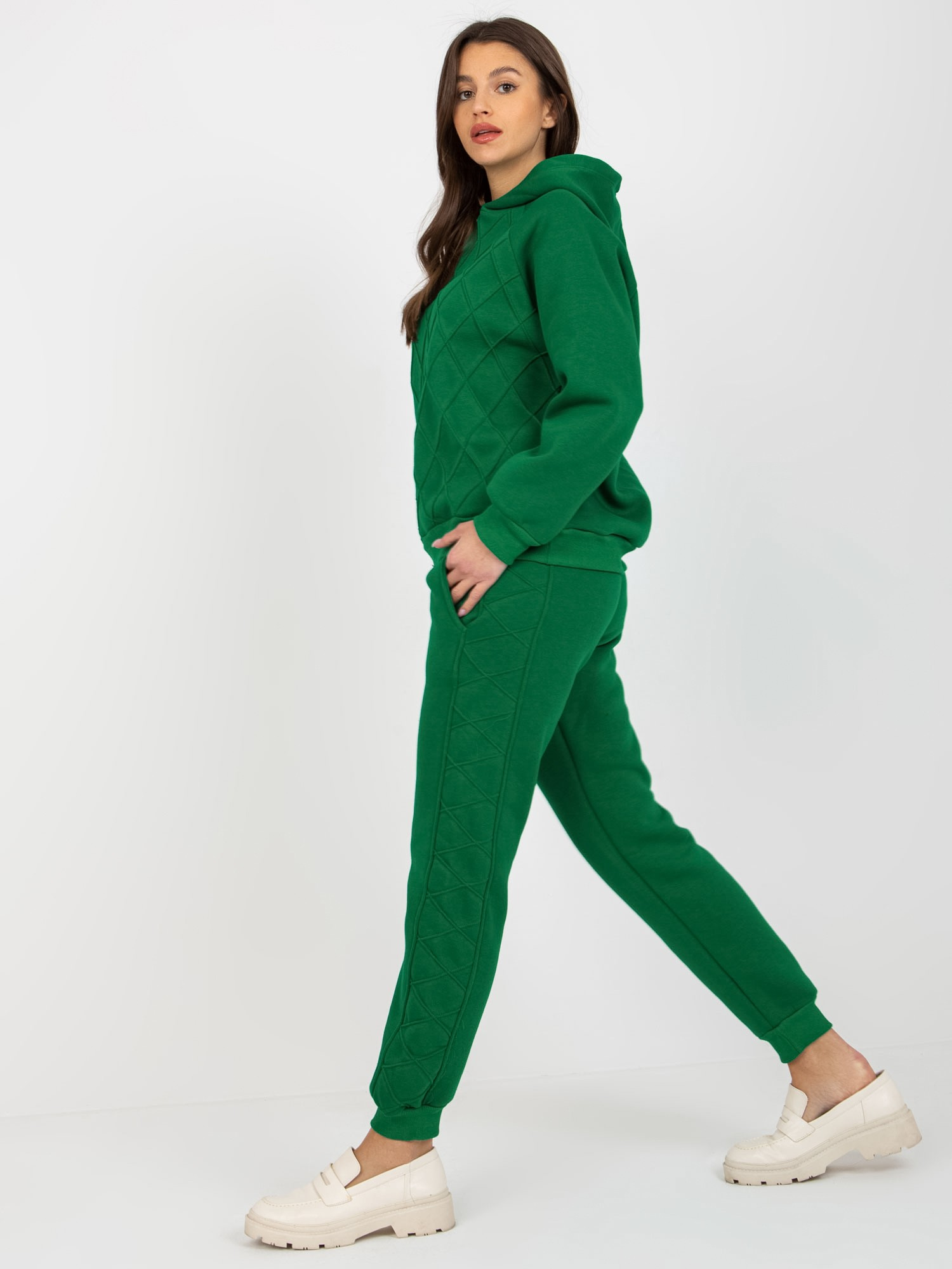 Zielony dwuczęściowy komplet dresowy ze spodniami .