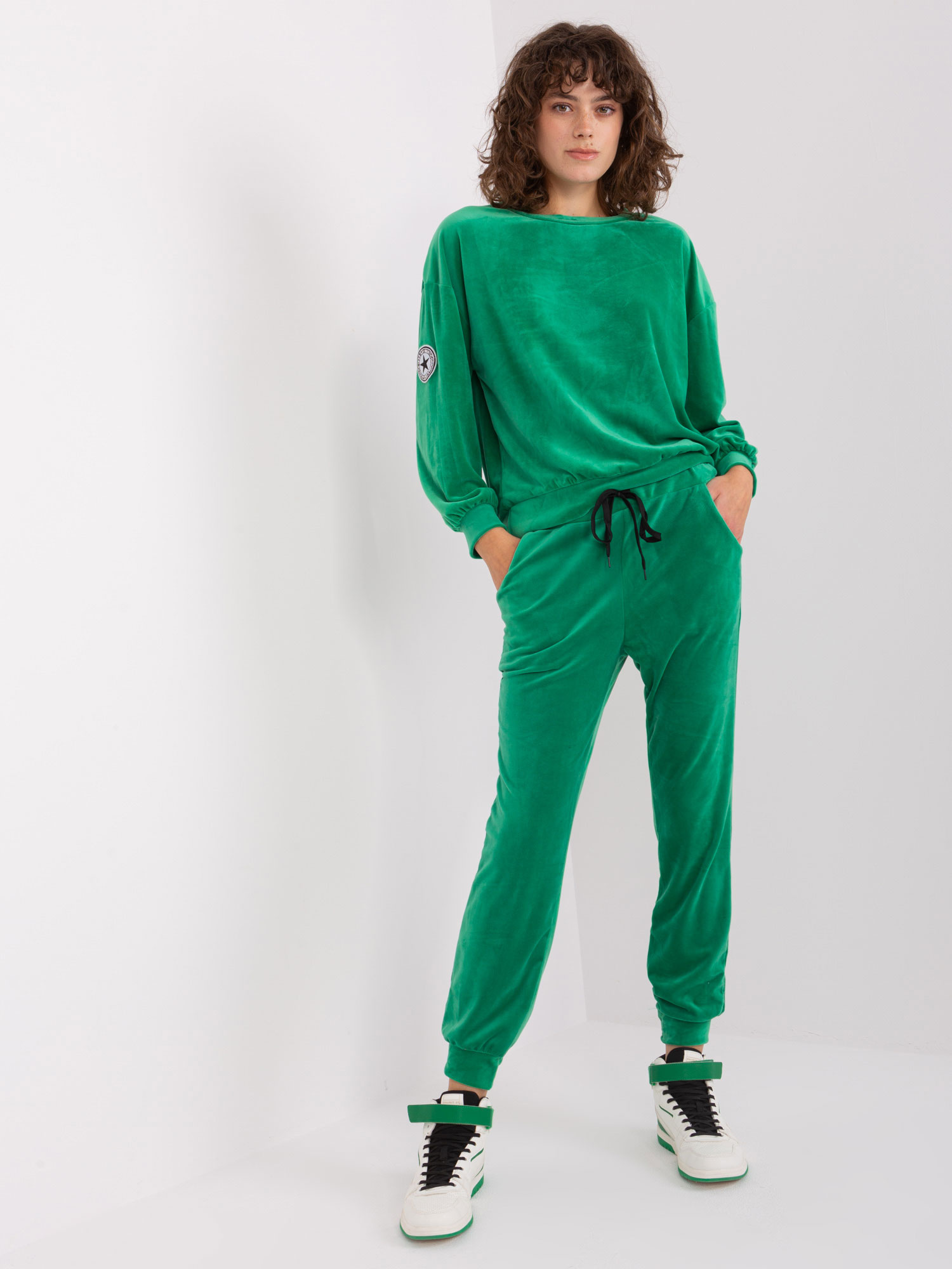Zielony komplet welurowy dwuczęściowy.