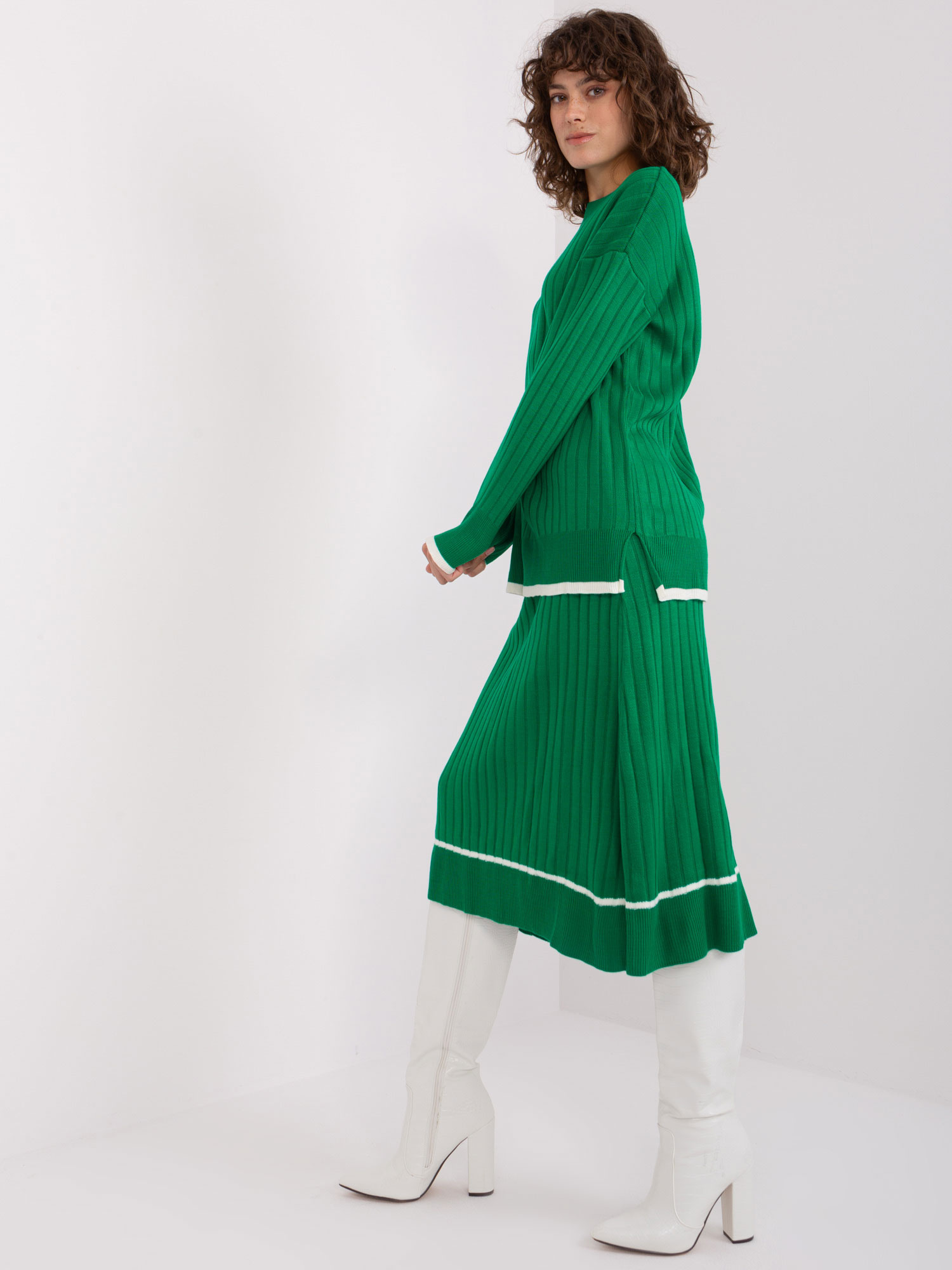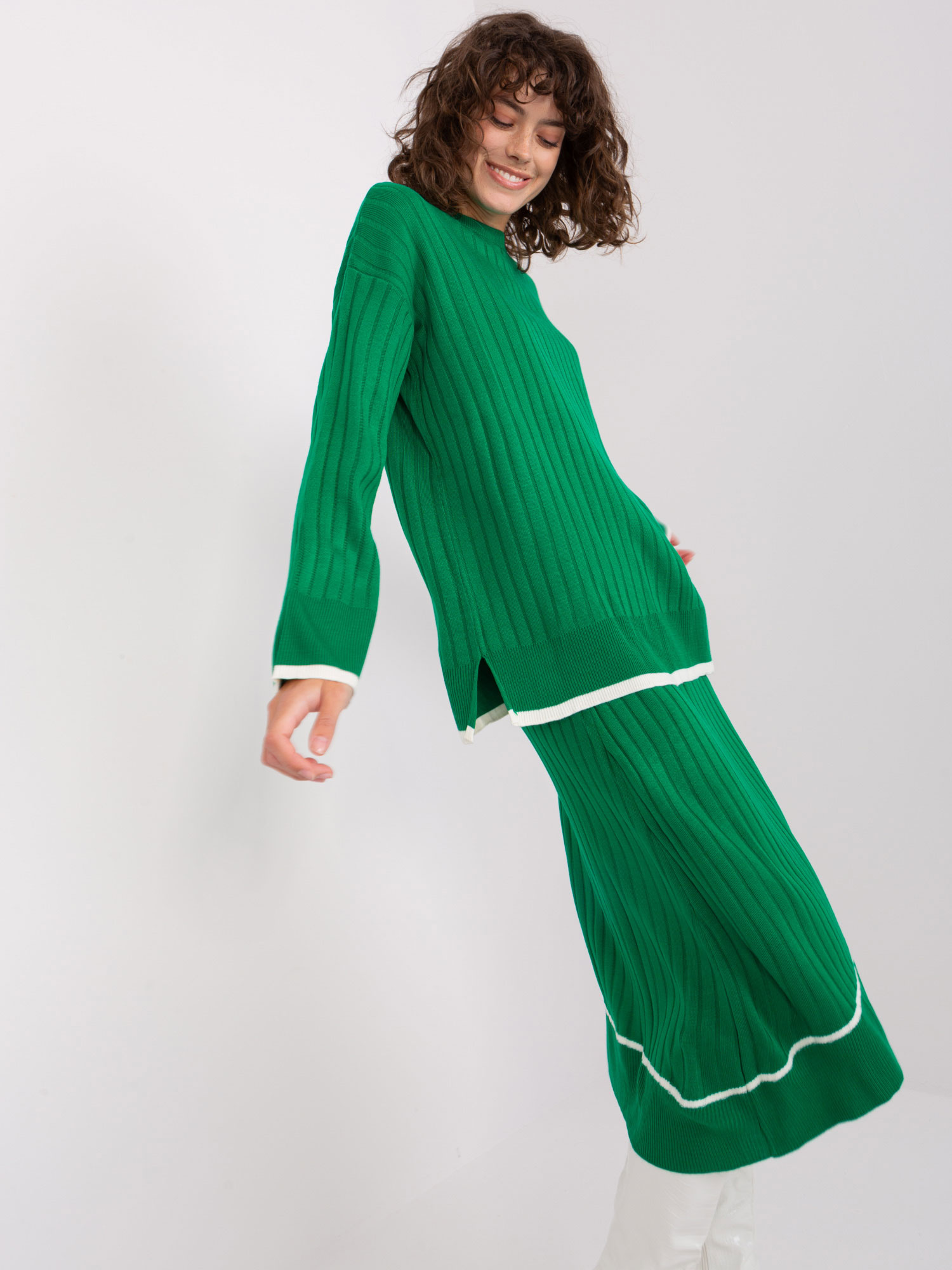 Zielony dwuczęściowy komplet damski dzianinowy.