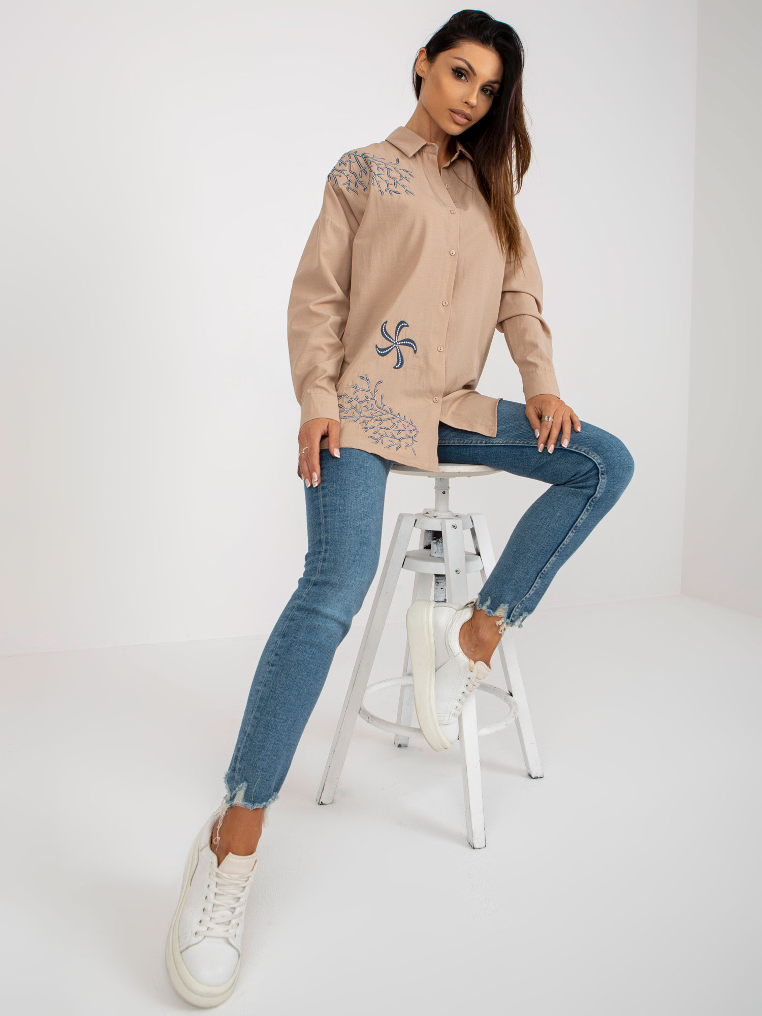 Wymiary koszuli w rozmiarze S mierzone na płasko: szerokość pod pachami – 58 cm, długość rękawa – 62 cm, długość całkowita (przód) – 73 cm, długość całkowita (tył) – 79 cm.
