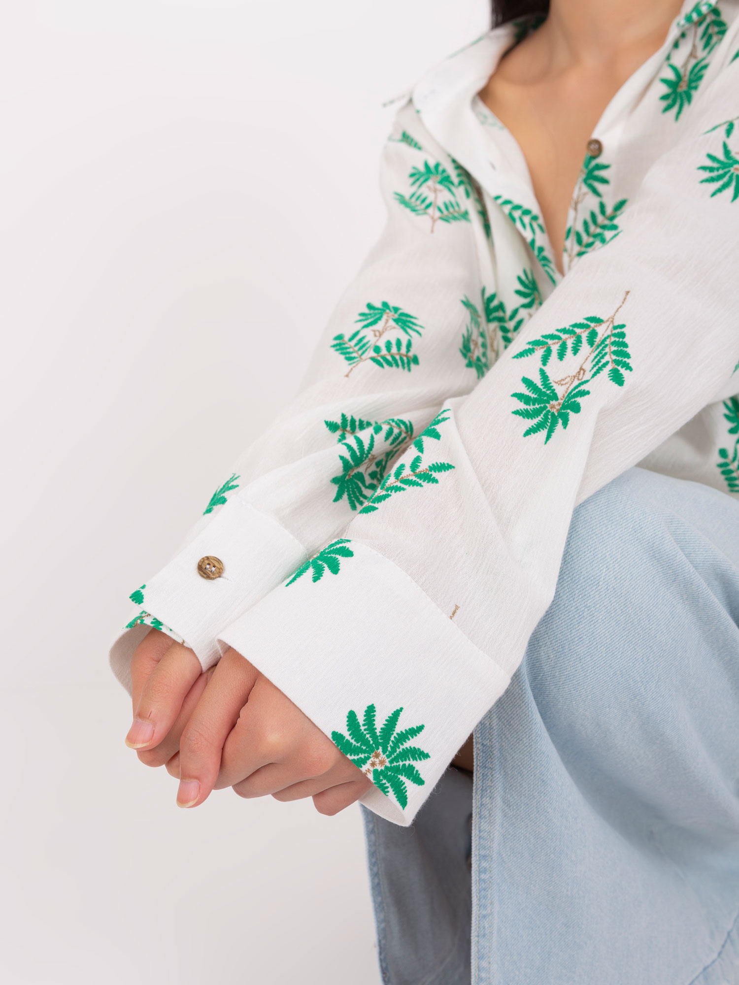 Ecru-zielona damska koszula oversize we wzory .