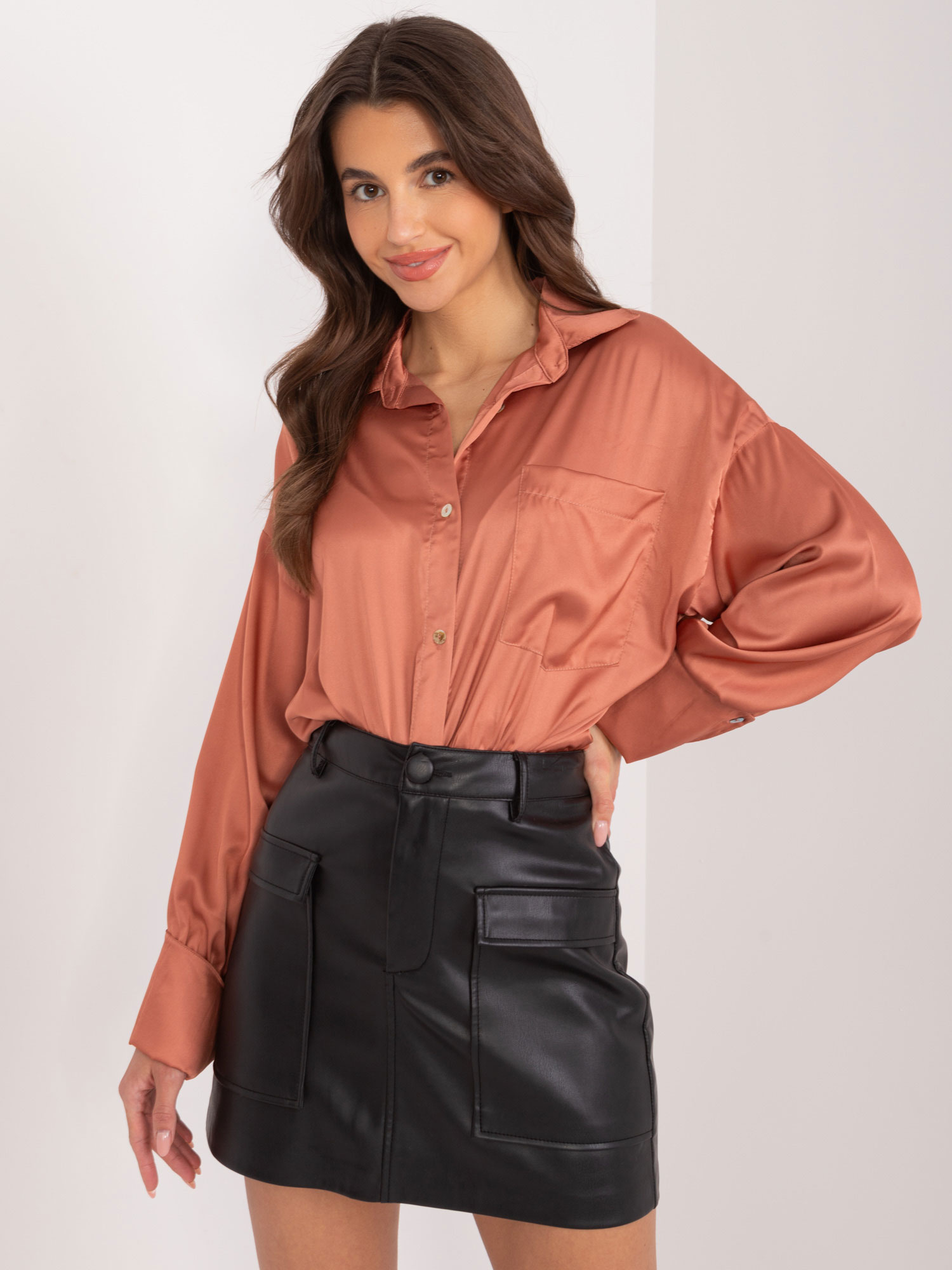 Wymiary koszuli w rozmiarze S/M mierzone na płasko: szerokość pod pachami – 54 cm, długość rękawa – 68 cm, długość całkowita – 65 cm.
