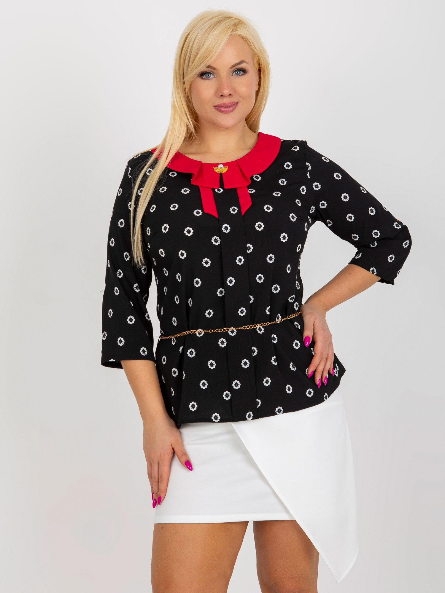 Wymiary bluzki w rozmiarze 44 mierzone na płasko: szerokość pod pachami- 55 cm, długość rękawa – 44 cm, długość całkowita – 68 cm.