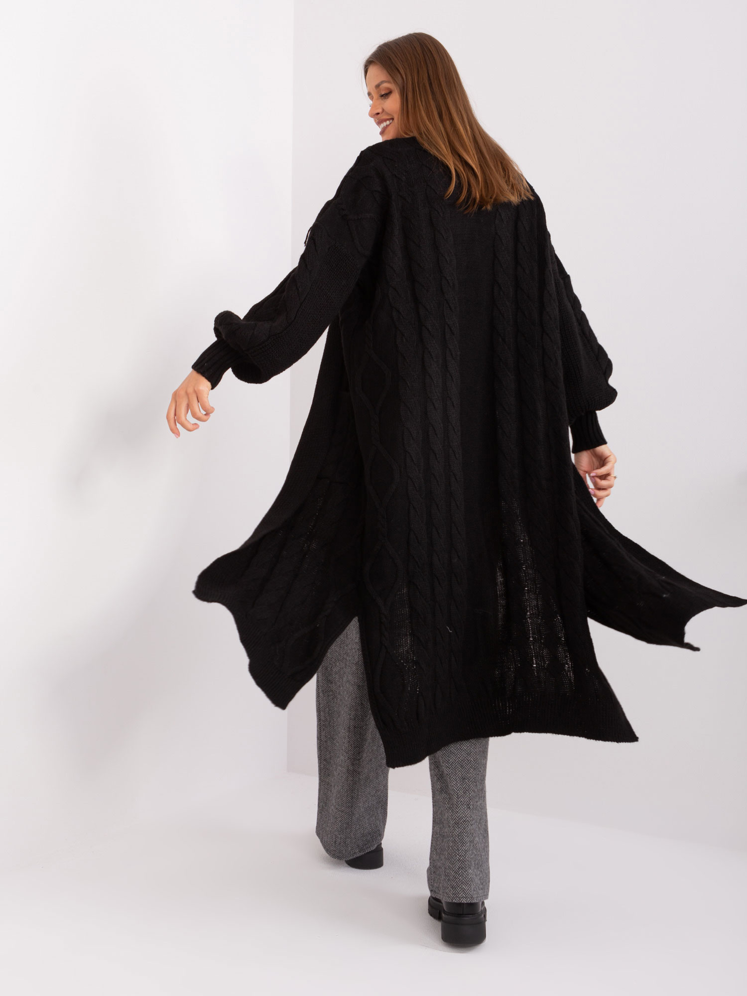 - Modelka: Modelka ma na sobie rozmiar one size. Wymiary modelki: wzrost 175 cm, biust 90 cm, talia 66 cm, biodra 94 cm