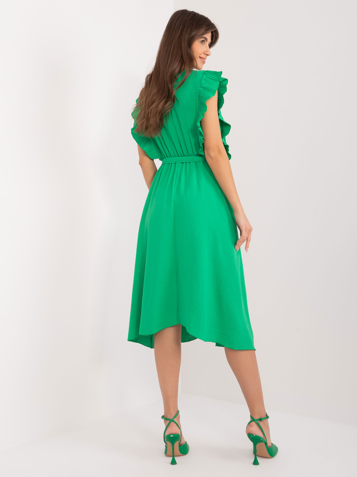 Modelka ma na sobie rozmiar S. Wymiary modelki: wzrost 168 cm, biust 89 cm, talia 60 cm, biodra 91 cm.