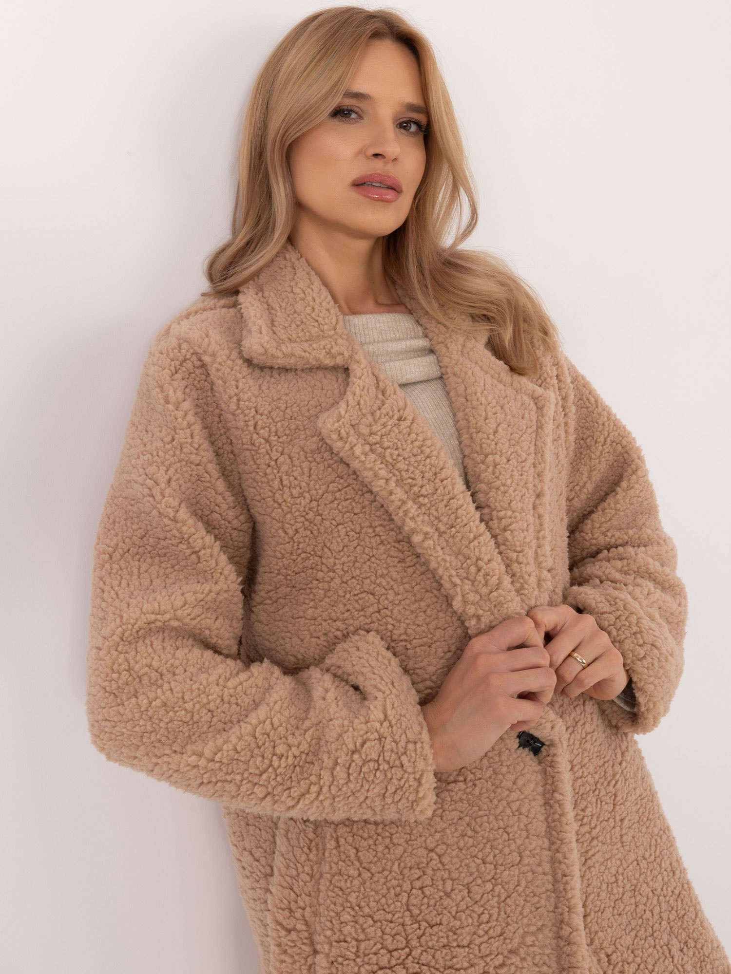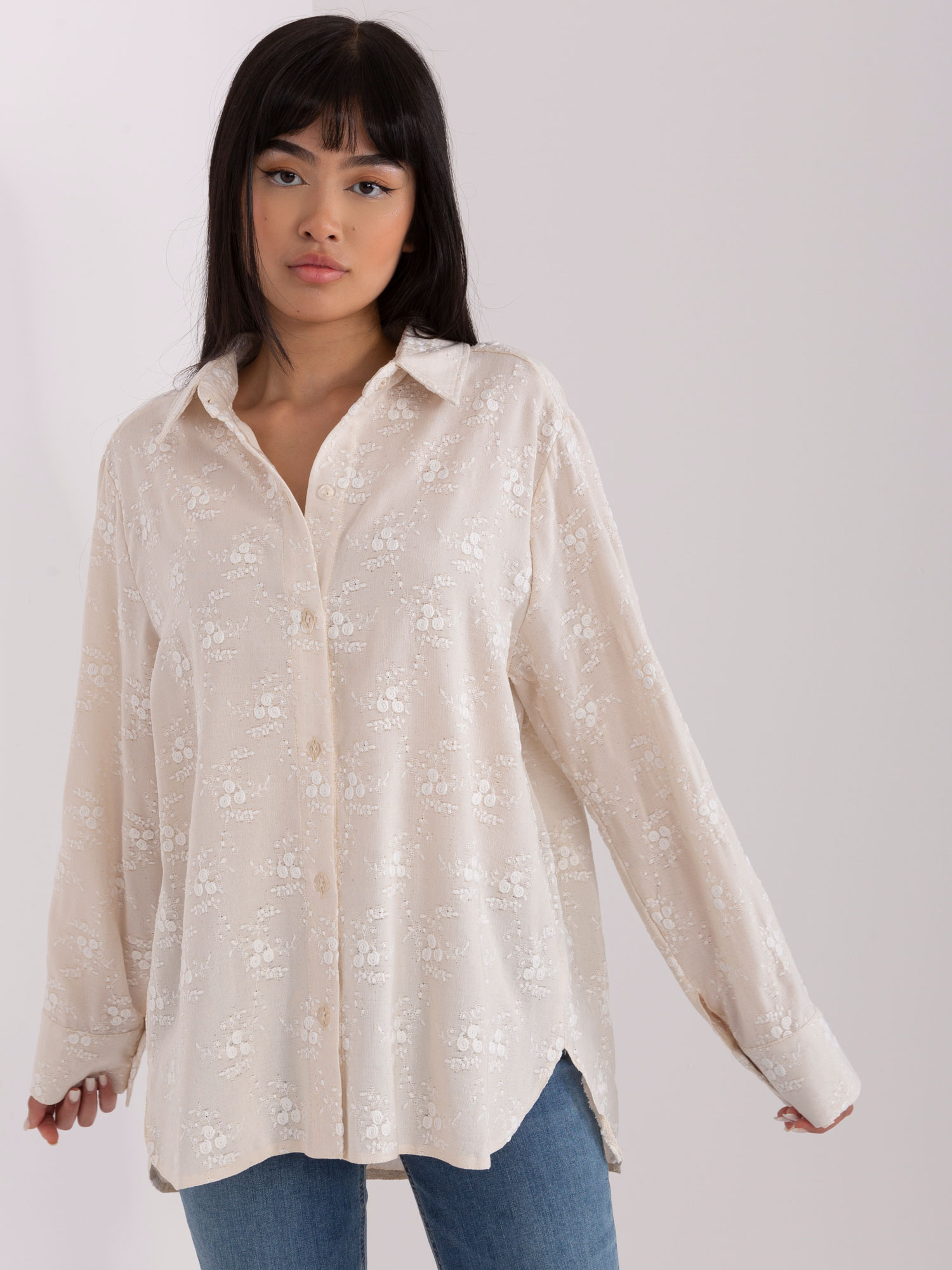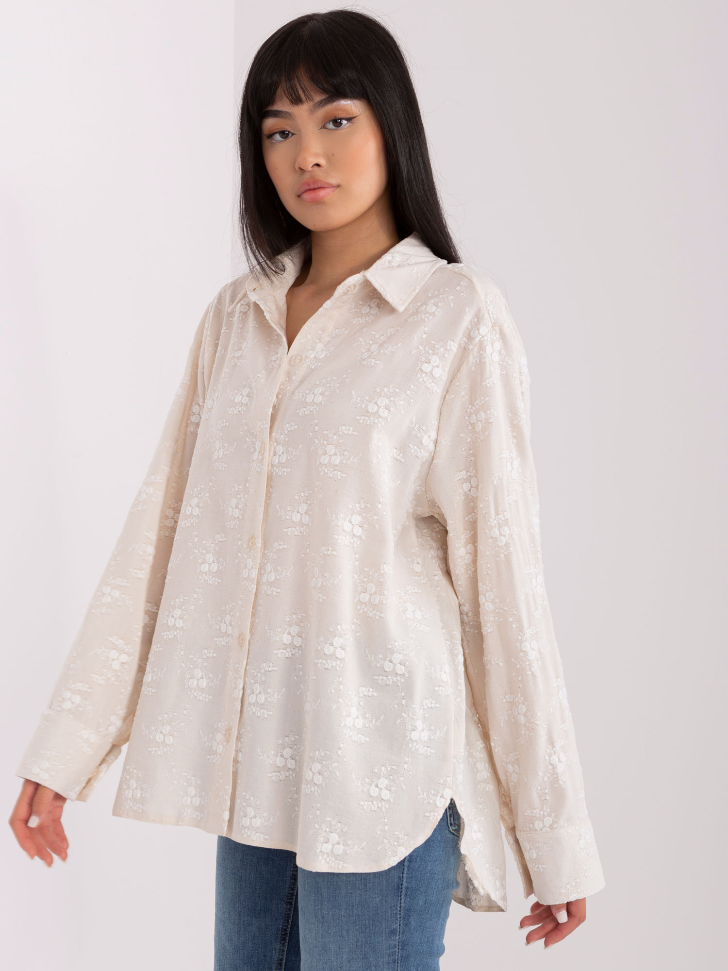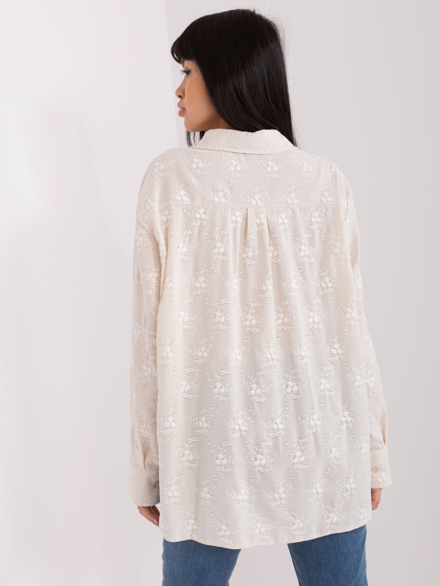 Jasnobeżowa rozpinana koszula oversize z haftem .