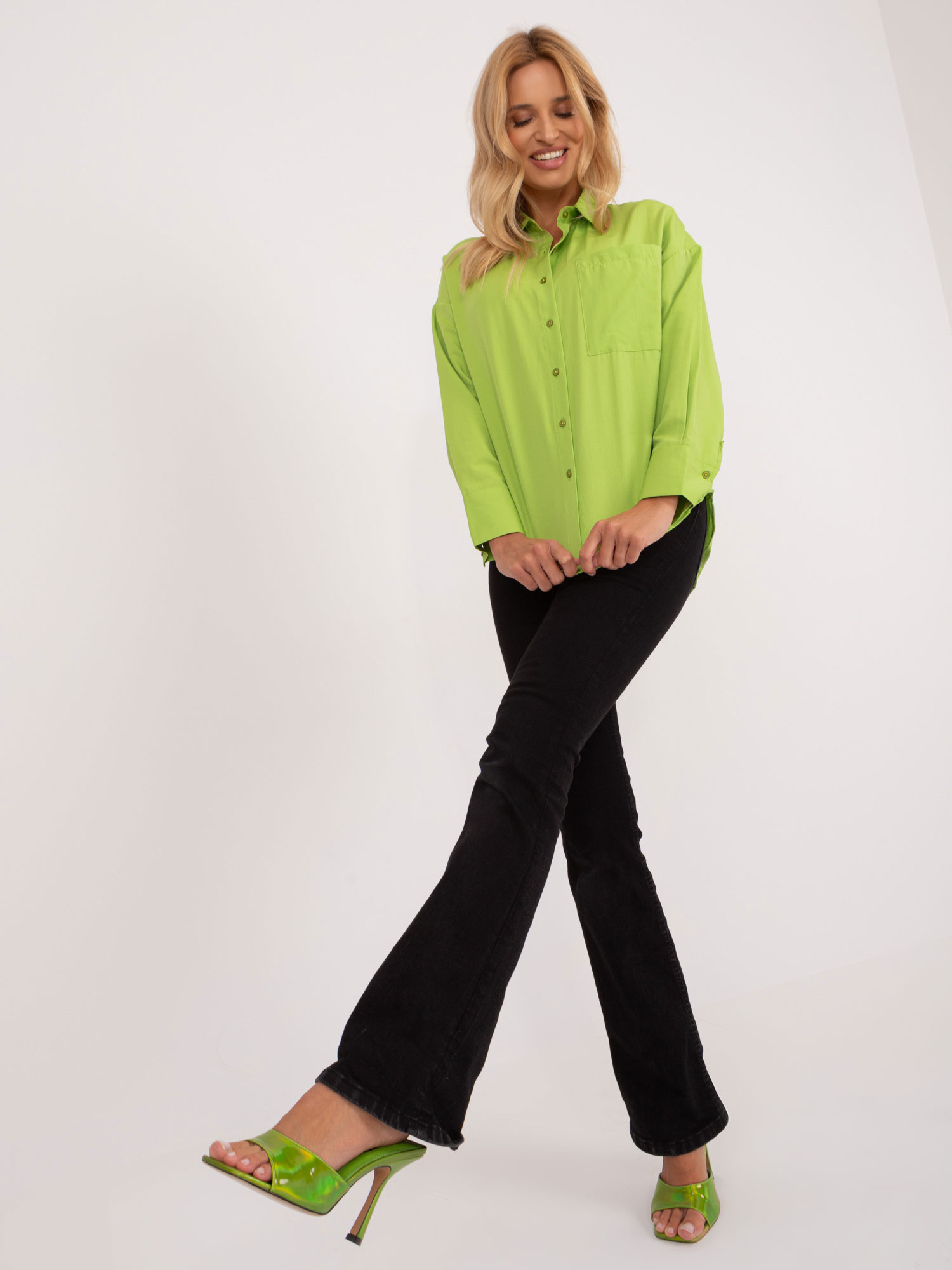 Wymiary koszuli w rozmiarze one size mierzone na płasko: szerokość pod pachami – 61 cm, długość rękawa – 59 cm, długość całkowita (przód) – 65 cm, długość całkowita (tył) – 71 cm.