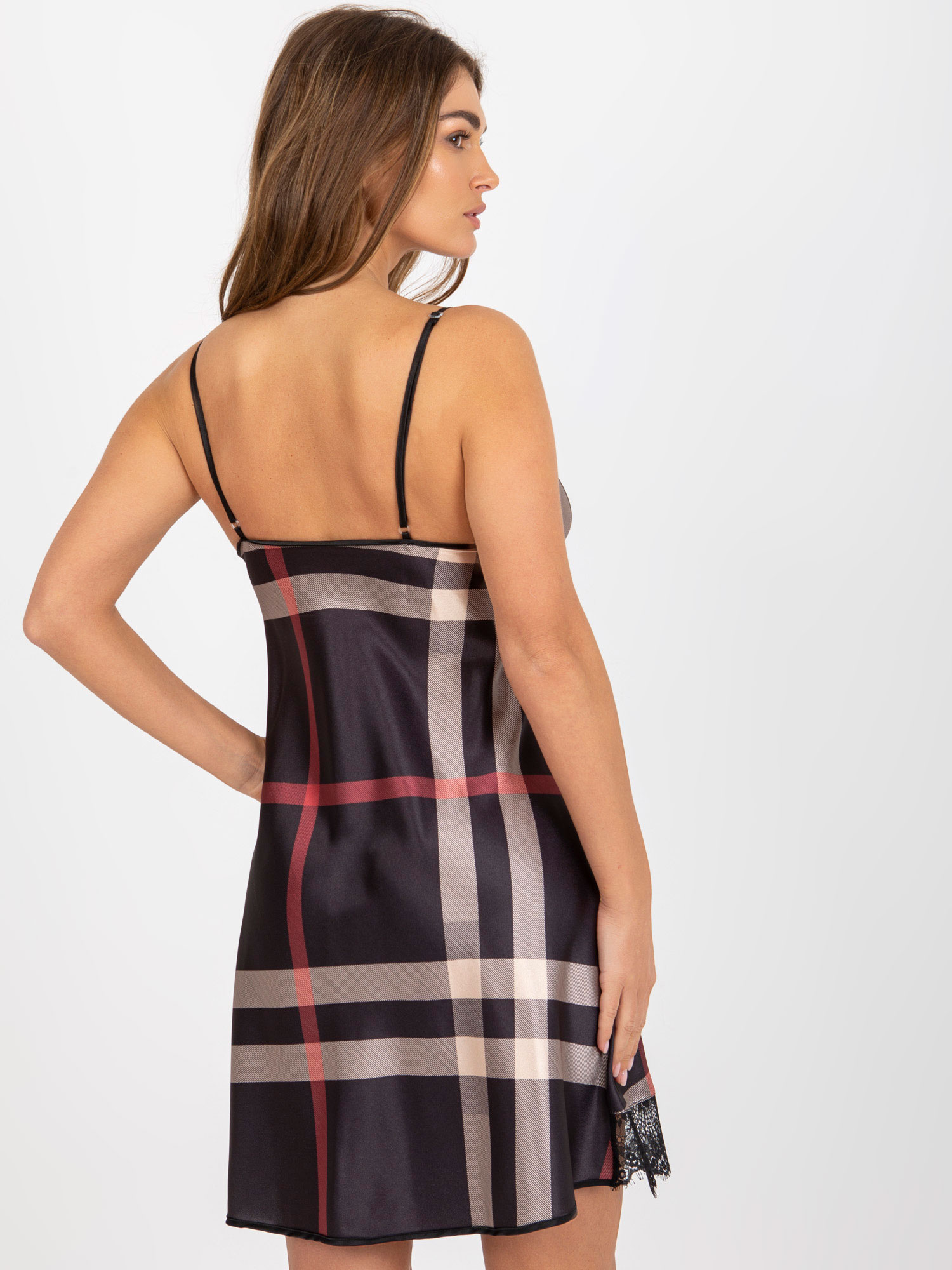 Modelka ma na sobie rozmiar S. Wymiary modelki: wzrost 170 cm, biust 93 cm, talia 66 cm, biodra 93 cm.